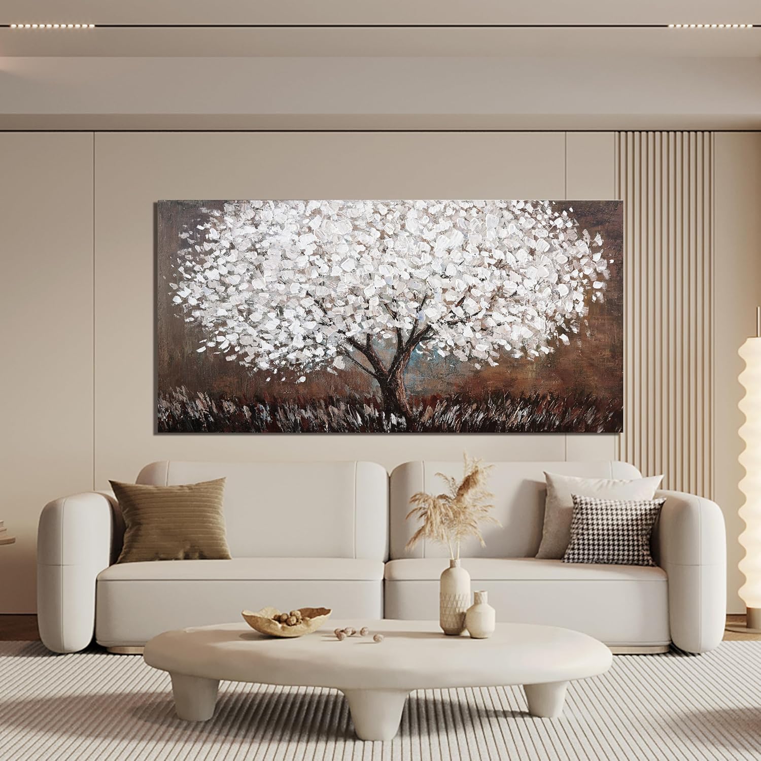 Canvas Wall Art Decor Artwork for Walls Black and White Wall Art Decor for Living Room Tree of Life Wall Art Vintage Tree Flower Wall Decor Art Paintings Prints for Room Home Office Wall Decor 24"X48"