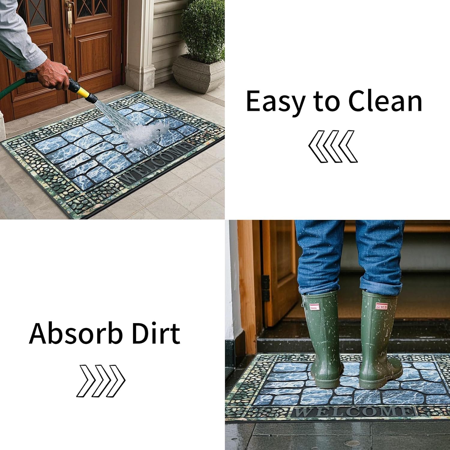 - 【Easy to Clean】This welcome doormat is dirt resistant and easy to clean—simply rinse with water. The cleaning process is straightforward, ensuring your mat stays in great condition for a long time. It effectively absorbs moisture from shoes, keeping your indoor floors tidy.