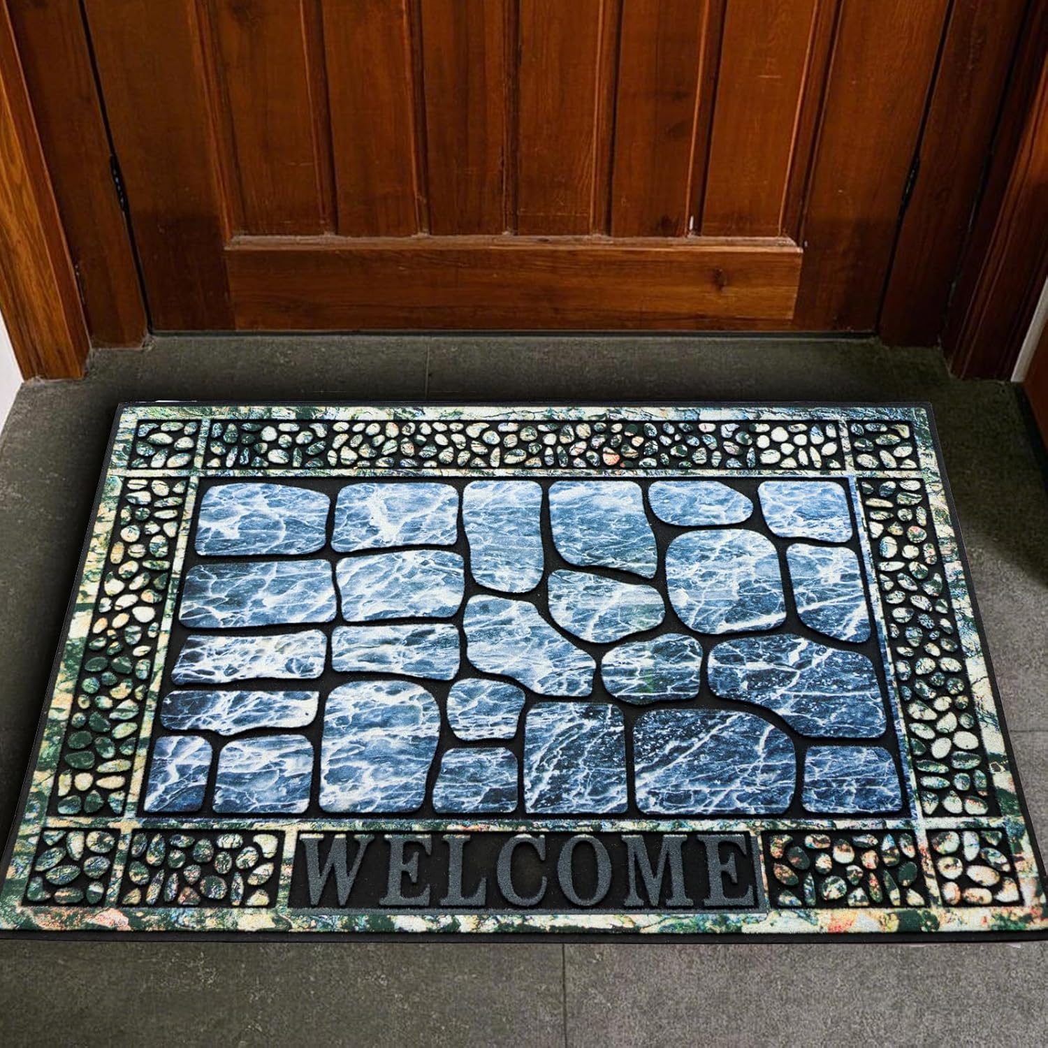 Door Mat Welcome Mat, Heavy Duty Door Mat 17.7 x 29.5 Inch Front Door Mat Rug Doormat for Outdoor Entrance Home Non-Slip Rubber Rug for Front Door, Outside, Entryway, Patio (Blue Welcome)