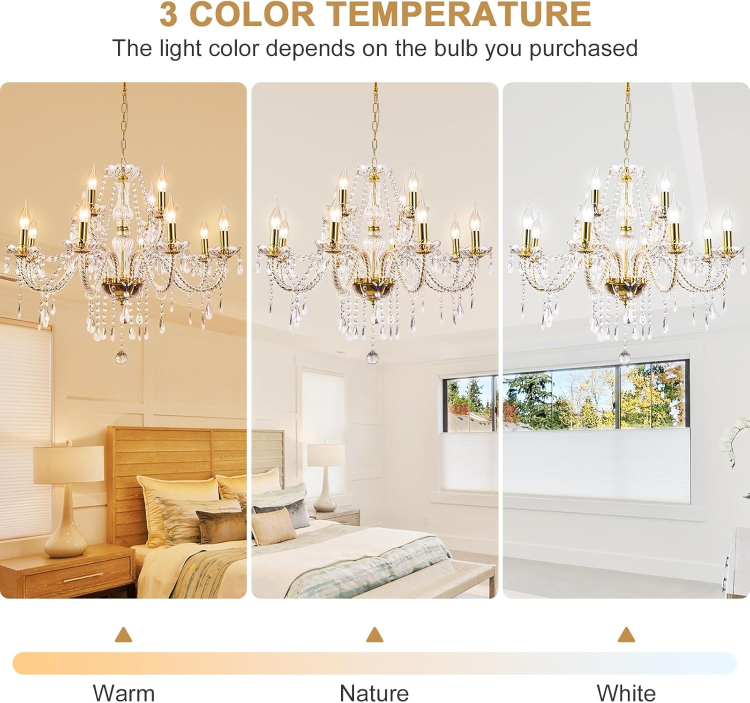 Modern Elegant 8 Lights K9 Crystal Glass Chandelier Golden Pendant Ceiling Lighting European Style for Dining Living Room Bedroom Transparent, 8 E12 Bulbs Required