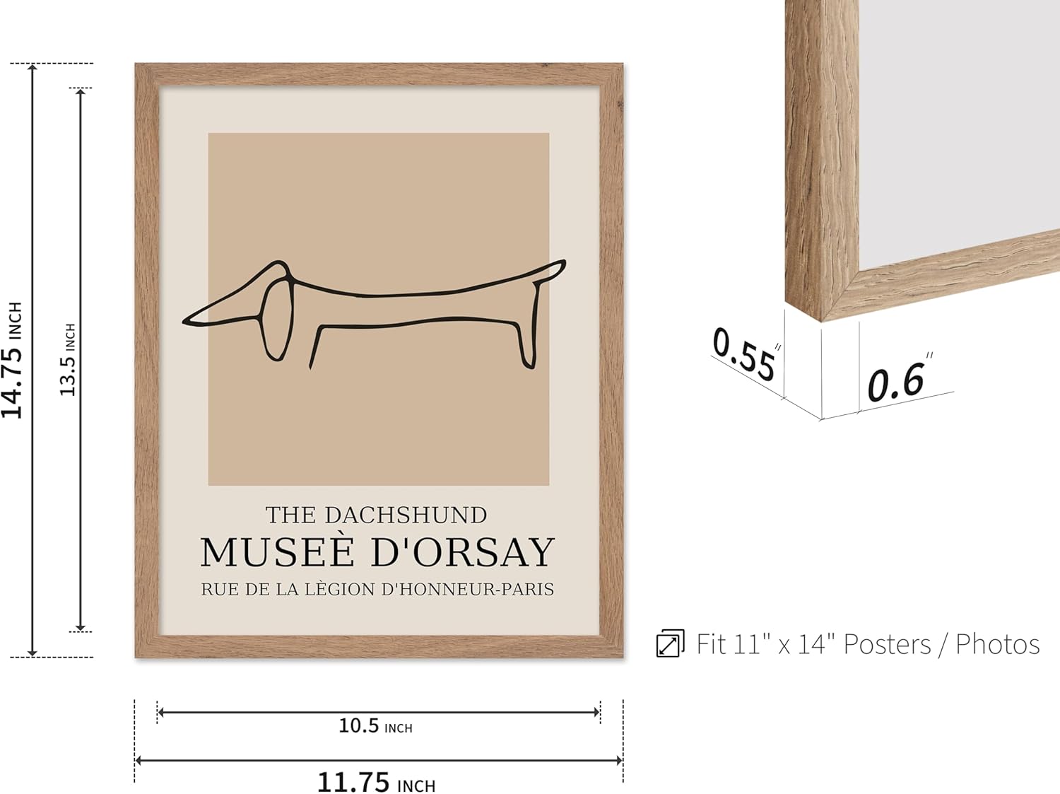 Poster Master Vintage Poster - Retro Minimalist Print - Gift for Artist, Housewarming - Dachshund Dog, Line Drawing, Abstract - Wall Decor for Living Room, Bedroom, 11x14 Beige Framed