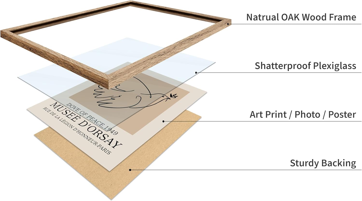 Poster Master Vintage Poster - Retro Minimalist Print - Gift for Artist, Friend - Dove Of Peace, Line Drawing, Sketch, Abstract - Wall Decor for Living Room, Bedroom, 16x20 Beige Framed