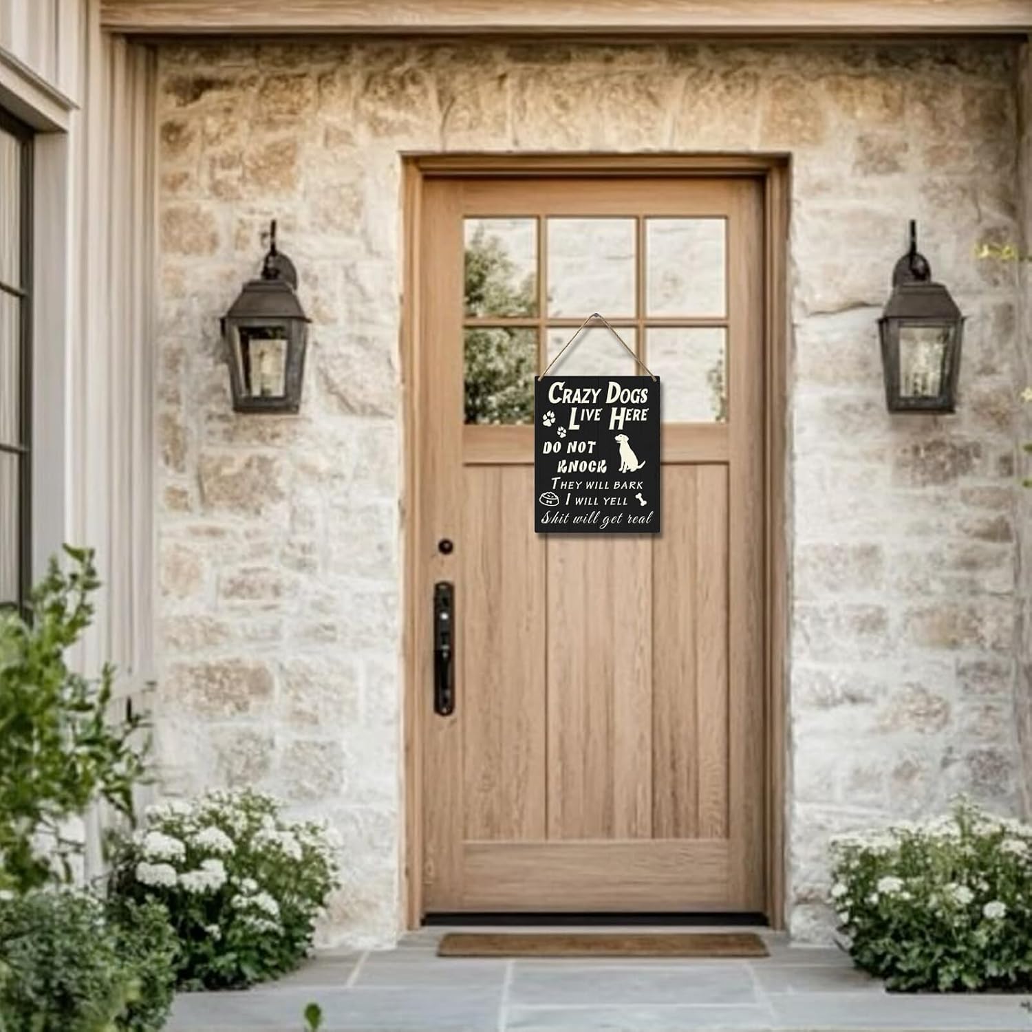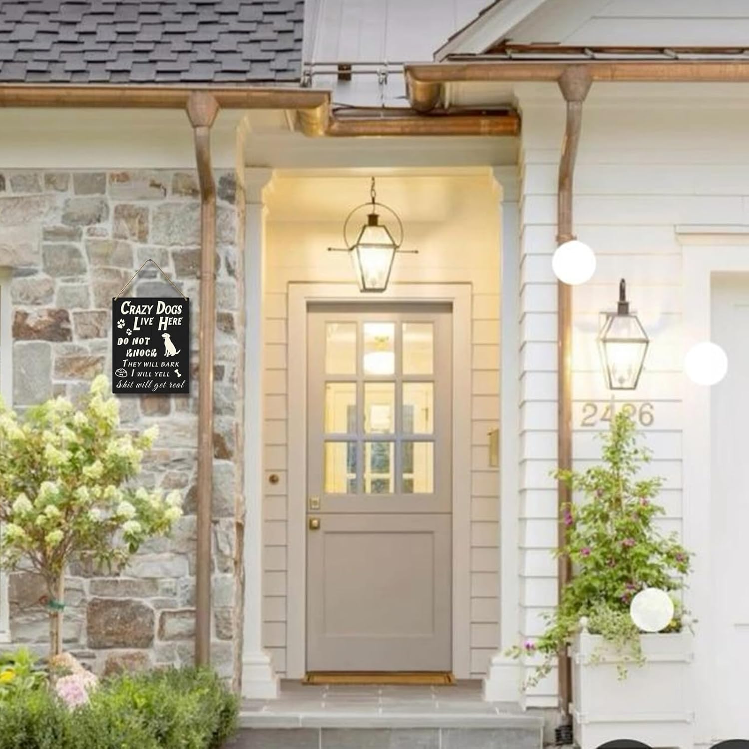 - Effortless Installation: Crazy dogs live here do not knock sign includes a rustic hemp cord hanger for quick mounting. No tools needed. Hang it anywhere indoors or outdoors in seconds!
