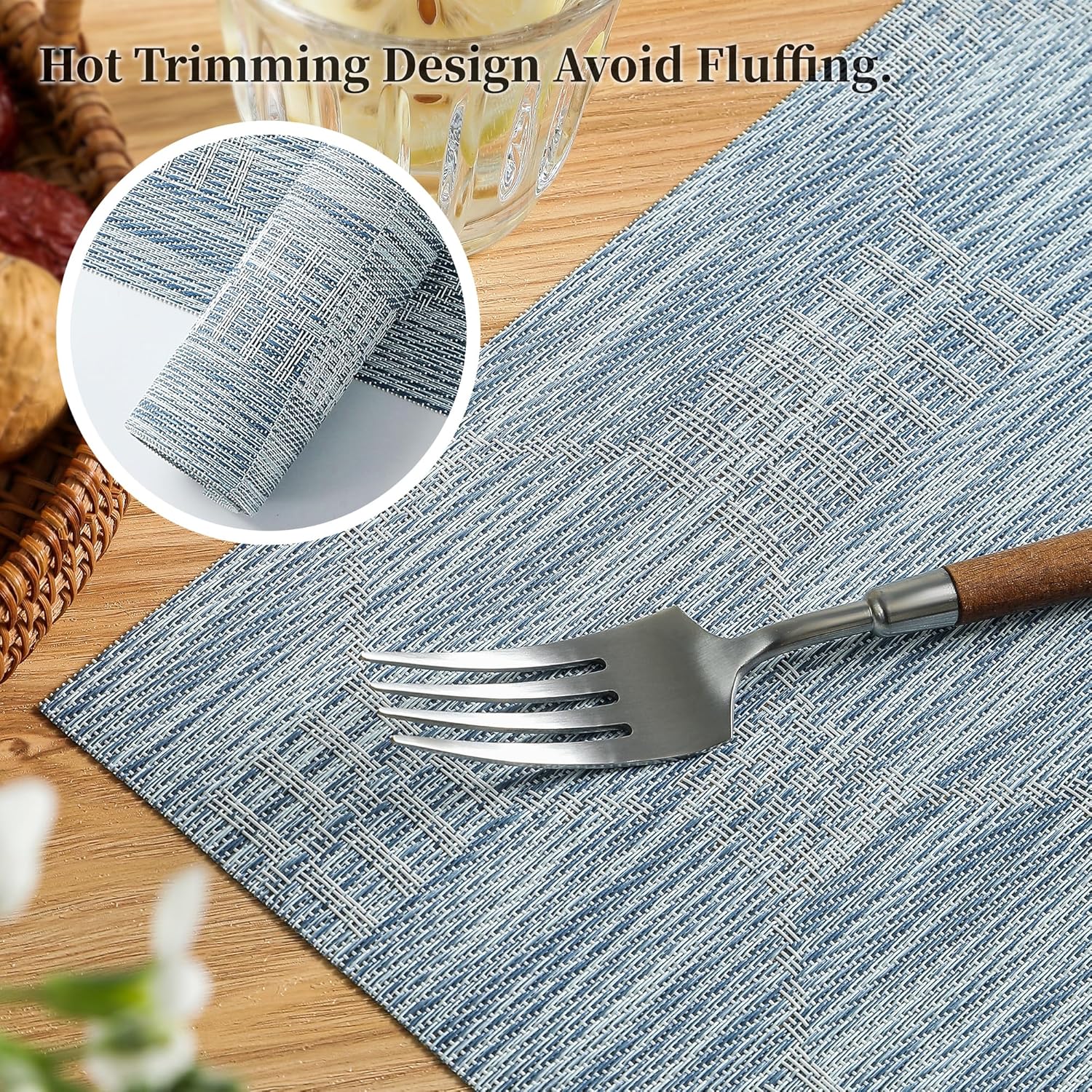 - Elegant and Practical Design: With a luxurious vinyl woven texture, precision cutting, and heat-trimmed edges, our double-sided placemats offer a sophisticated and practical solution. They provide a non-slip surface, resist fading, and are easy to clean, elevating your dining experience