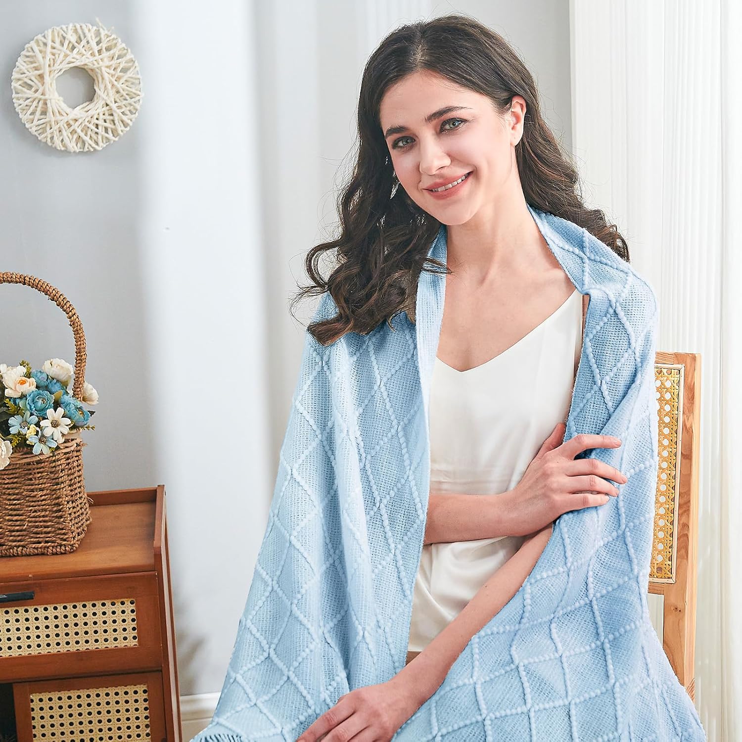 - 【GIFT IDEAS】: Special knitted diamond patterns add a unique accent to your room and people draping it as a shawl. Very suitable for tasteful homeowners. Throw blanket for women, classic but not too tacky as a housewarming gift. Tips: Due to different lighting, display settings, or resolutions, the difference in color happens. We are dying to show the color. To do so, one of the images shows the color difference in different lighting. Hope these instructions would help you to buy a throw.
