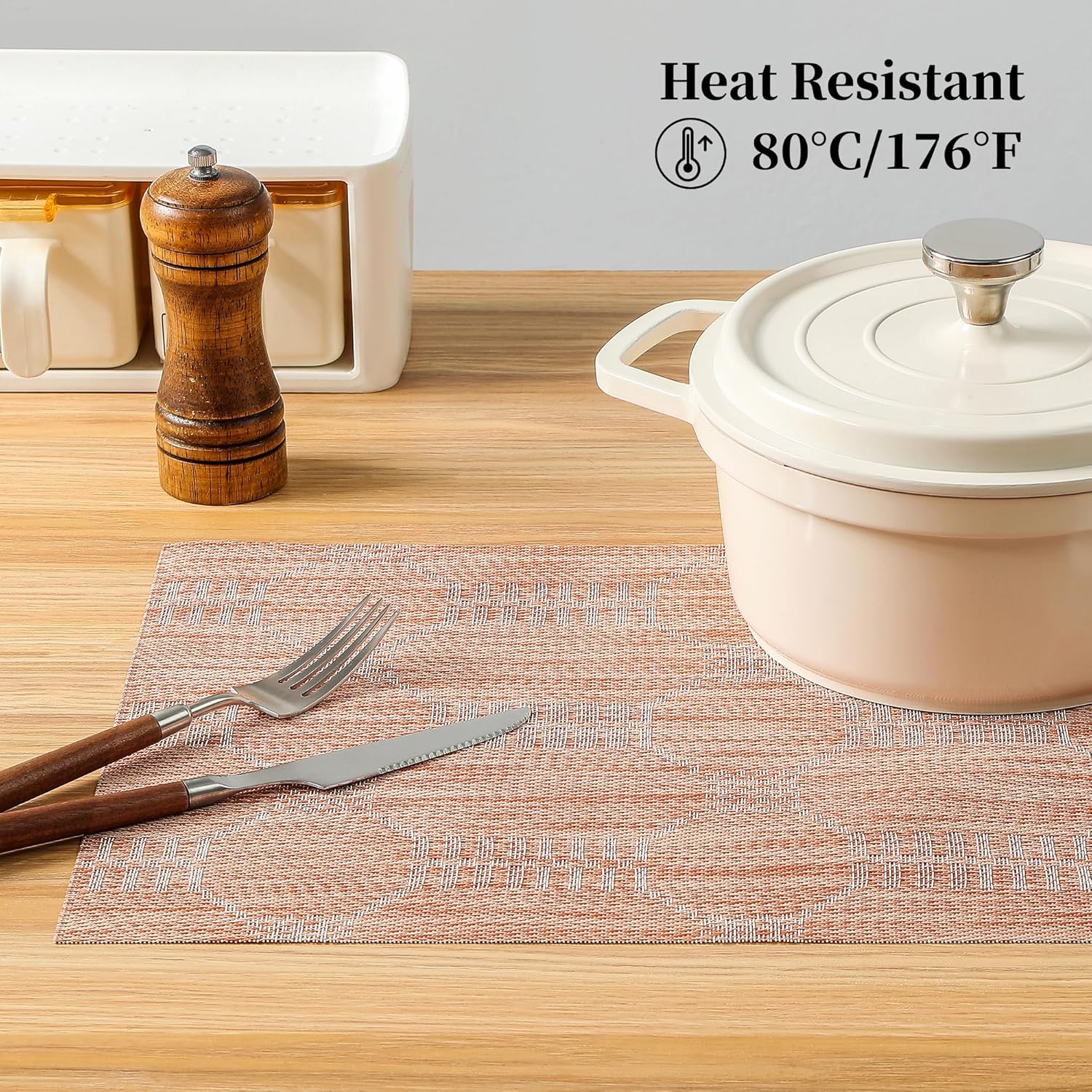 - Protects Your Table: Keep your table safe from scratches and spills with our heat-resistant placemats. They can withstand temperatures up to 176℉(80℃) and help keep food warm. Add style to your dining setting while ensuring table protection