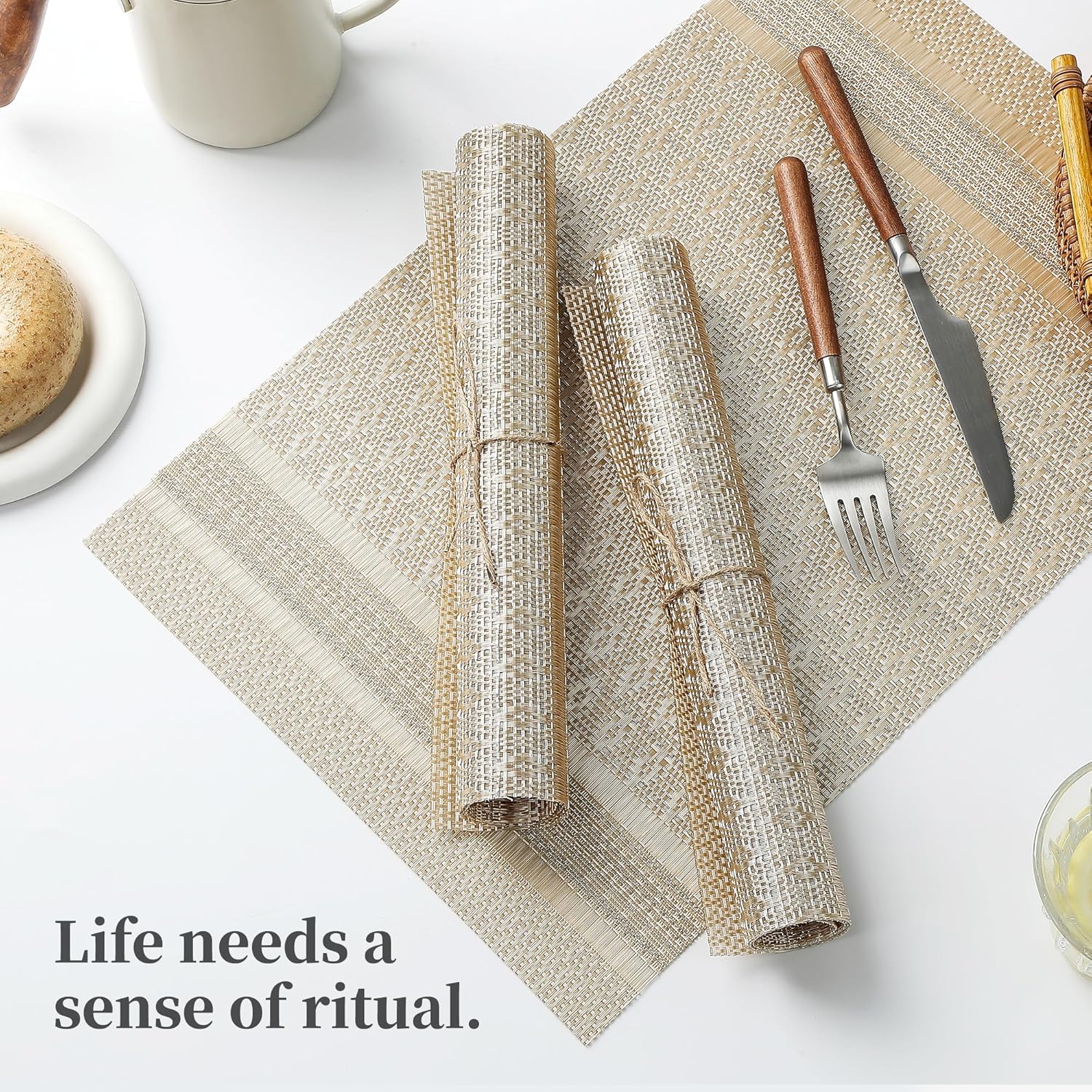 Leetaltree Stardust Yellow Placemats Set of 4 - Heat Resistant Non-Slip Place mats for Dining Table, Washable Durable PVC Vinyl Woven Table Mats(Stardust Yellow, 4)