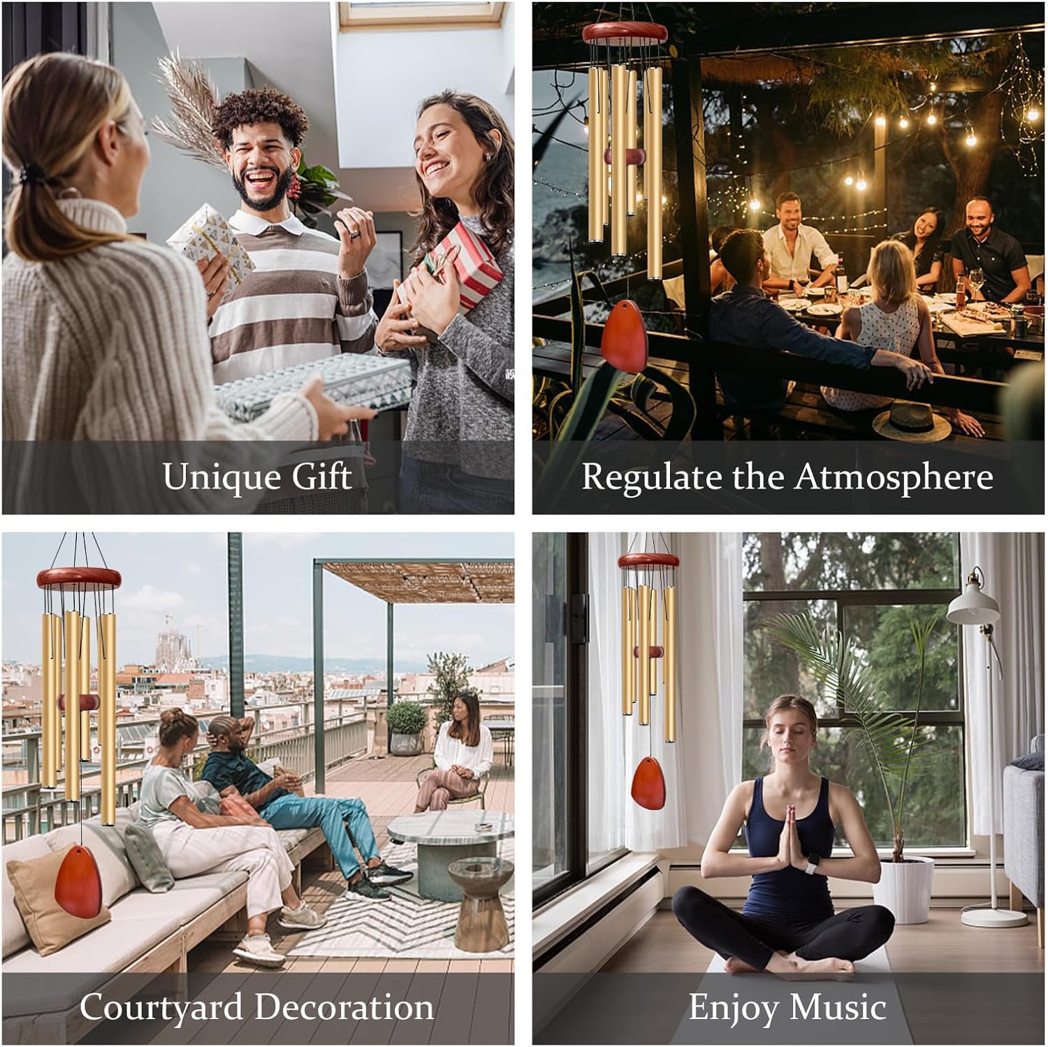 - ♬ 【Calm Your Mind】: Let the outdoor wind chimes dance in the breeze, composing a serene nature melody that soothes your soul and cultivates a tranquil ambiance. Enhance your focus and peace, making them a perfect companion for activities like meditation, yoga, Zen practices, and more.