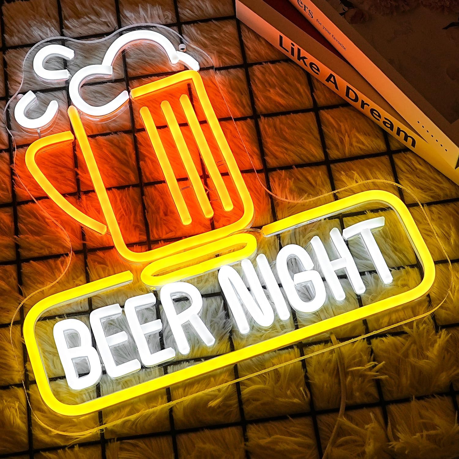 Beer Night Neon Sign for Man Cave Bar Decor Yellow White Beer Neon Light Bar Neon Sign Wall Art for Bedroom Beer Pub Man Cave Restaurant Party Decor