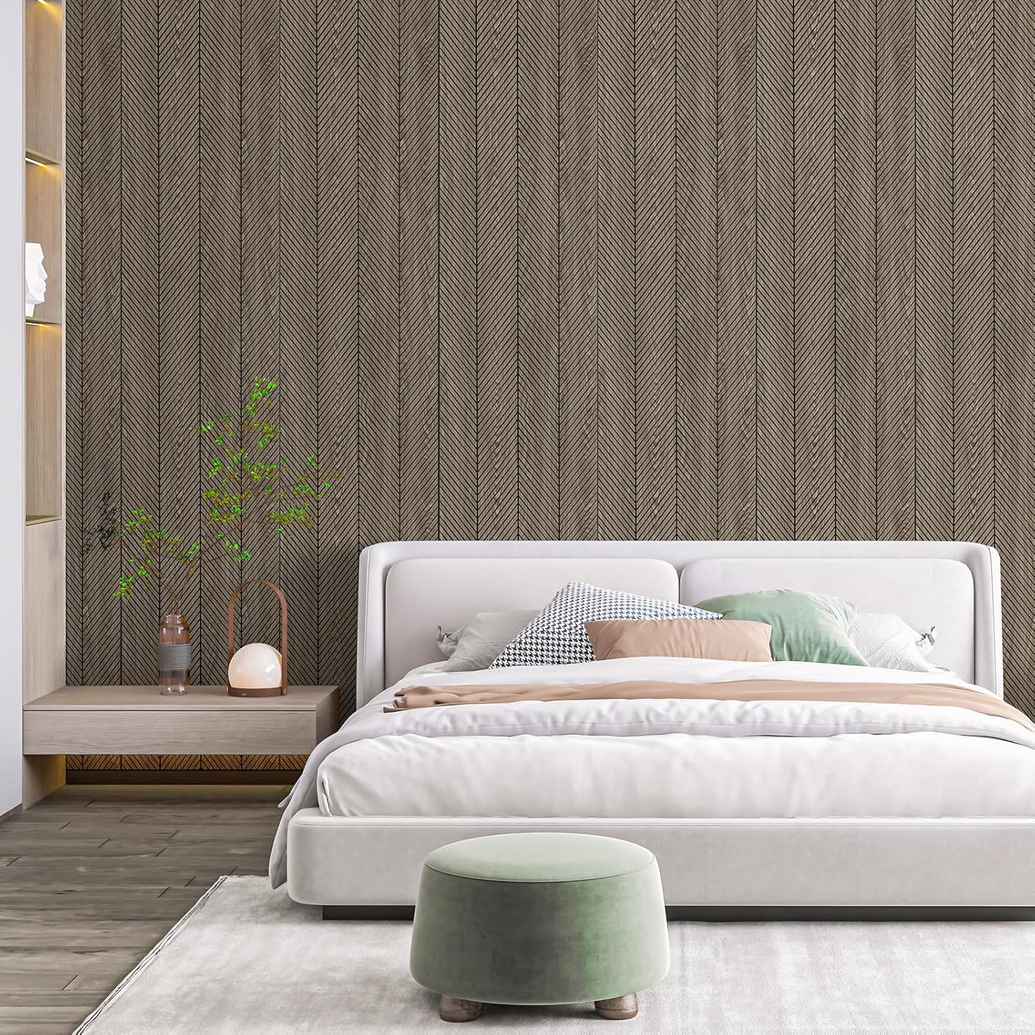 Art3d 4-Pack Glue-On Herringbone Wainscoting Panel for Interior Wall Decor - 104 x 12 Inch Polystyrene Ultralight Slim Slat Wall Panels for Living Room Bedroom, Mahogany