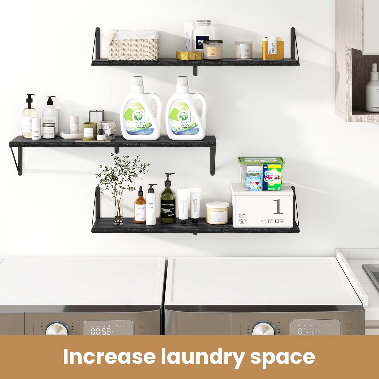 - ăSturdy and DurableăThe wall-mounted shelves are sturdy enough,with a load-bearing metal frame added in the middle,which will not deform and can withstand a weight of 40 pounds. It is very suitable for use as a wide bookshelf,TV stand,for home office,laundry room. Follow the instruction steps,including all necessary hardware,easy to assemble.