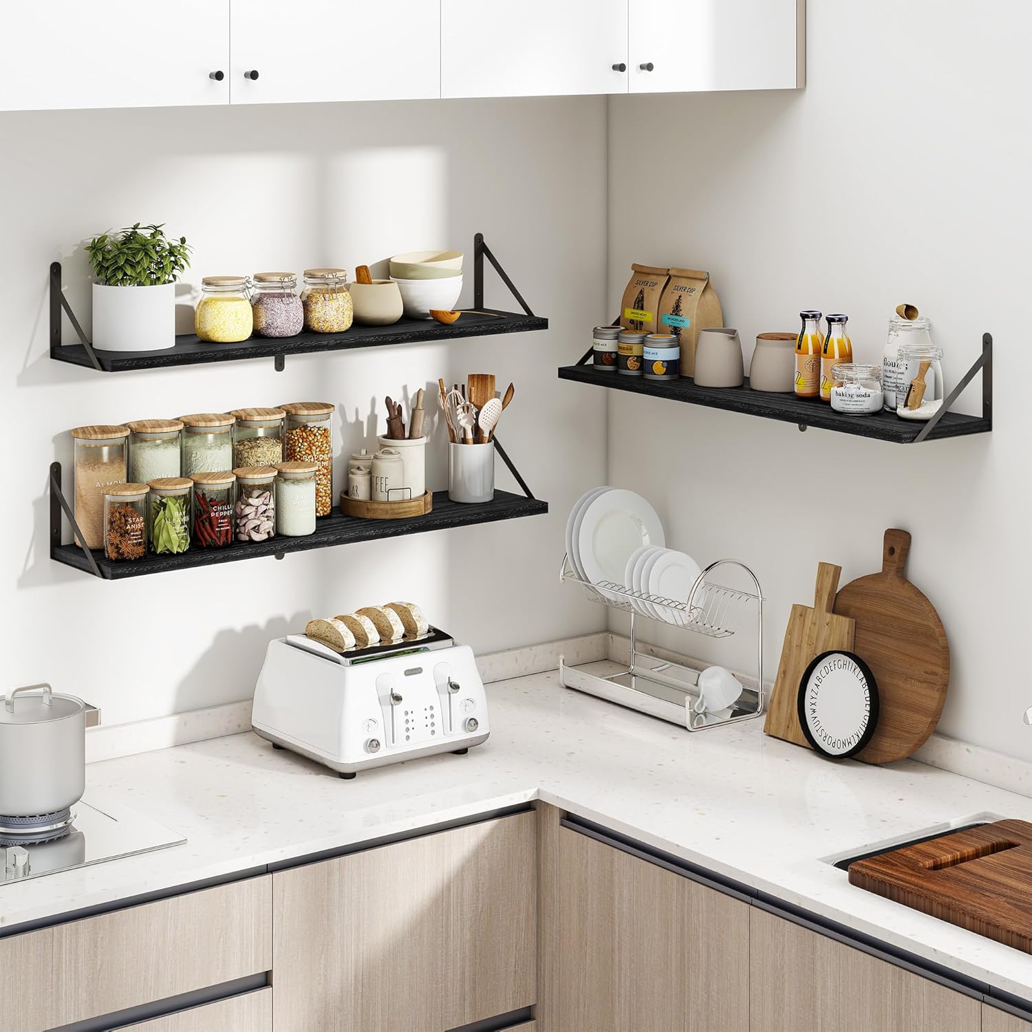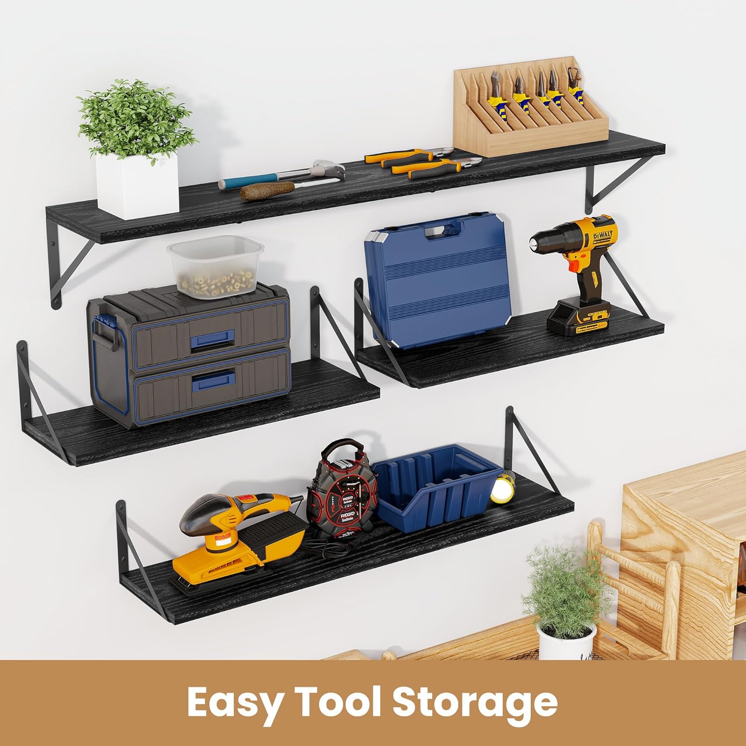 - ăSuitable for Various OccasionsăThese hanging bookshelves are ideal decorations for any room--the floating wooden shelves are perfect for various rooms such as bathrooms,kitchens,living rooms,game rooms,etc.,so they are the best gifts for birthdays or other occasions. These heavy-duty wall-mounted bookshelves can be used for closet organization,storage,and garage organization.