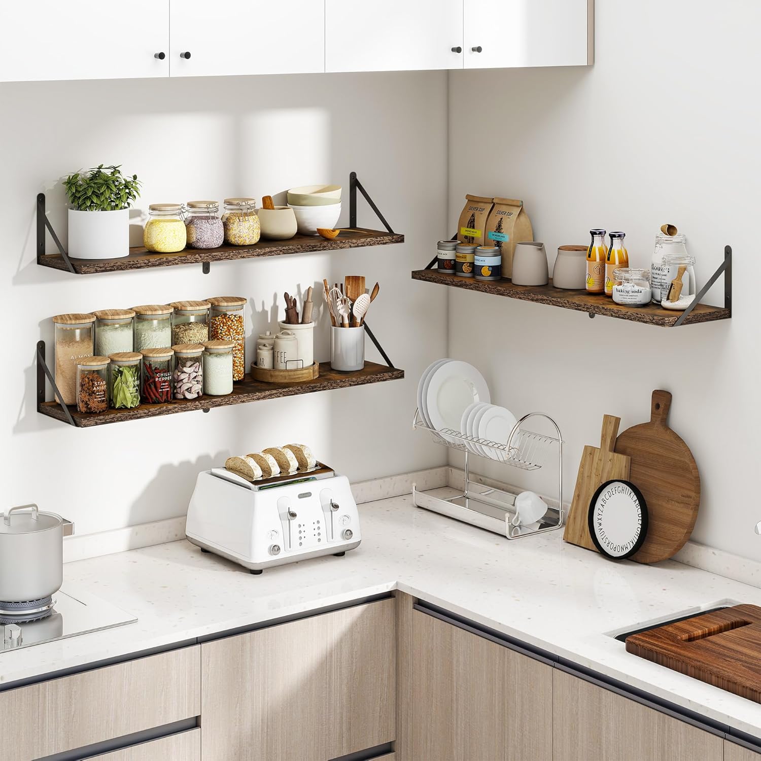 - ăSuitable for Various OccasionsăThese hanging bookshelves are ideal decorations for any room--the floating wooden shelves are perfect for various rooms such as bathrooms,kitchens,living rooms,game rooms,etc.,so they are the best gifts for birthdays or other occasions. These heavy-duty wall-mounted bookshelves can be used for closet organization,storage,and garage organization.