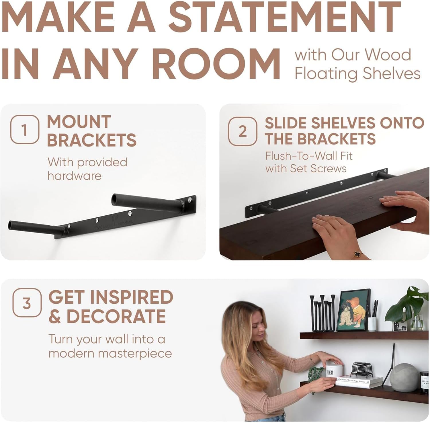 - NO HASSLE, ALL STYLE - Install our shelves in a snap with our easy-to-follow instructions. Spend less time setting up and more time admiring your fabulous new decor.