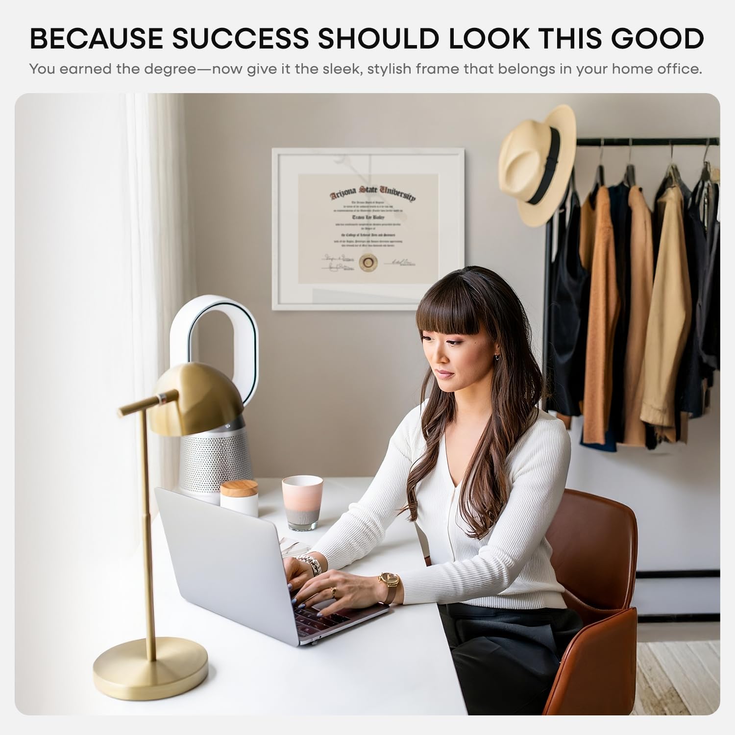Homeforia 15x18 Diploma White Wood Frame, High End Oak 15 x 18 Certificate Frames with Mat 11 x 14, 15by15 Document Frame Matted to 11by14, Graduation Wooden Frames, Tempered Glass, Wall Kit, Set of 1