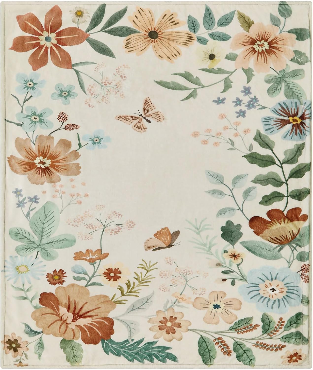 Lahome Floral Beige Soft Throw Blanket for Bed,Spring Botanical Aesthetic Blankets for Women Cute, Thick Warm Cozy Throws for Girls Sofa Chair Home Decor, Beige 50''x60''