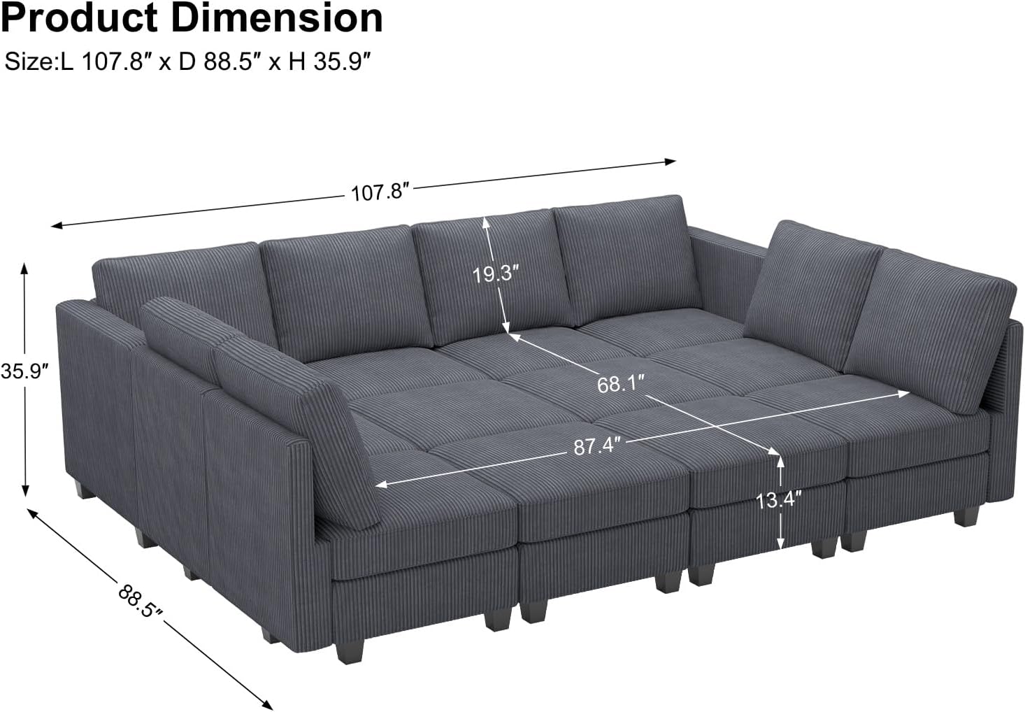 Belffin Oversized 12 Seat Modular Sectional Sleeper Sofa Convertible Sofa with Storage Seat Large Corduroy Modular Sectional Couch for Living Room Dark Grey