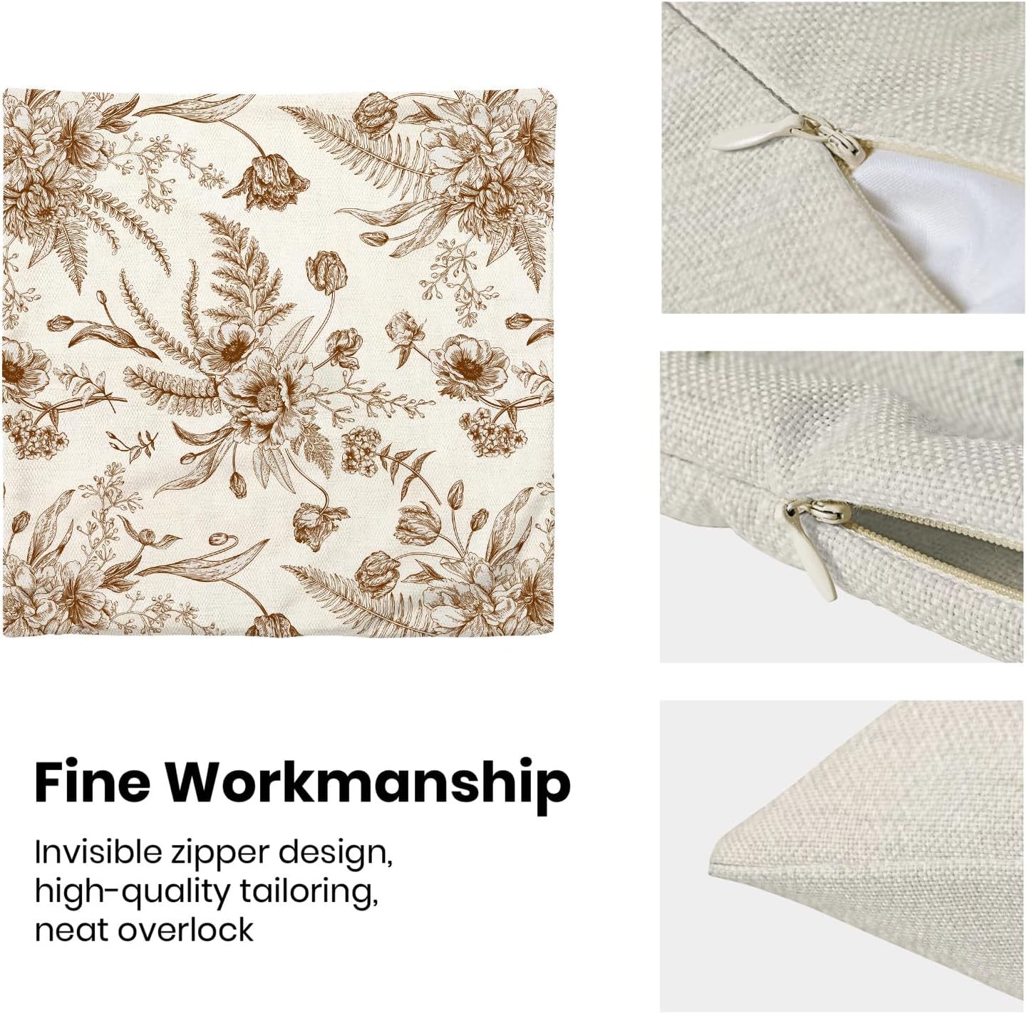 - 【Spring Pillow Covers】 Our Chinoiserie floral throw pillow covers 24x24 inch are made of excellent breathable polyester cotton fabric. The Brown and White floral decorative pillow covers is sturdy, soft and skin-friendly. The plant outdoor pillow covers adopt exquisite edging technology and four sides of our floral pillow covers are sewn firmly, which is not easy to open the line.