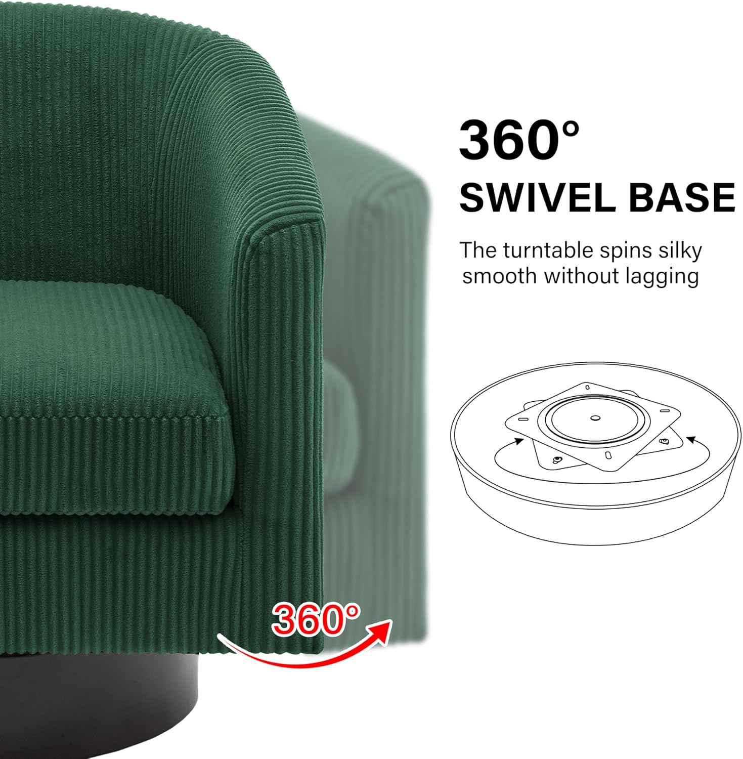 Swivel Barrel Accent Chair, Modern Round Corduroy Fabric Arm Chair for Living Room, Bedroom, Comfy Club Reading Chairs for Adults (Corduroy Dark Green, Set of 2)