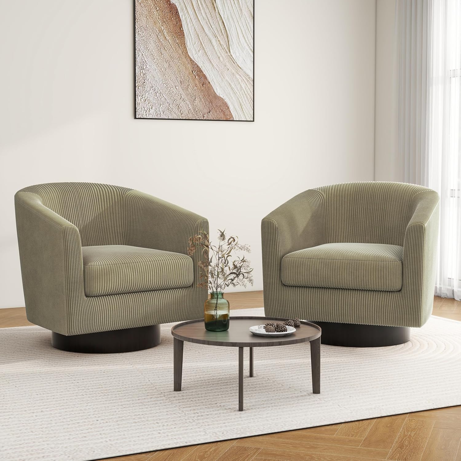 Swivel Barrel Accent Chair, Modern Round Corduroy Fabric Arm Chair for Living Room, Bedroom, Comfy Club Reading Chairs for Adults (Corduroy Camel, Set of 2)