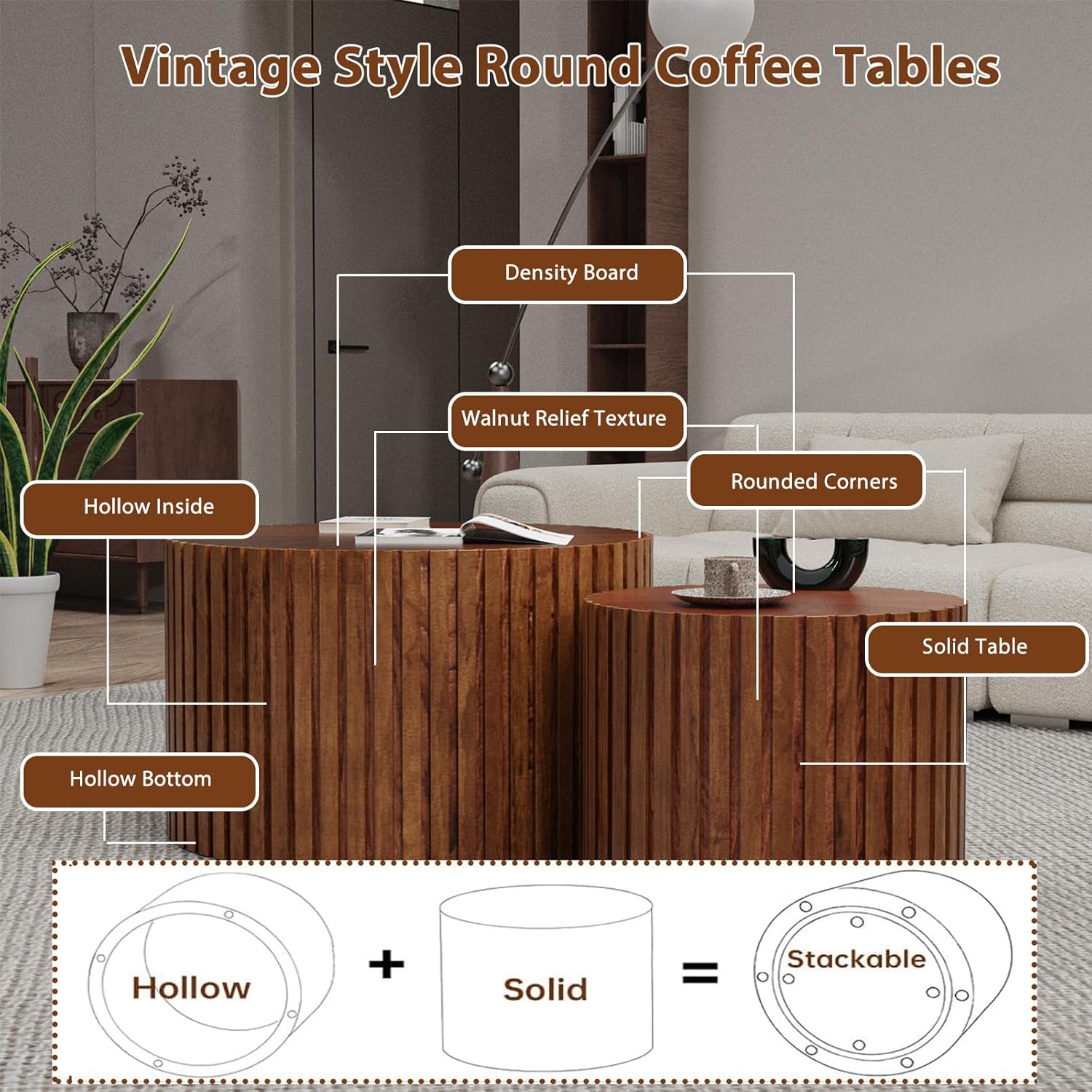 - Nesting Coffee Table Set of 2: This nesting coffee table includes two small coffee table. The round nesting coffee table is perfect for holding coffee, books, decorative items, drinks, remote controls, or other daily essentials. The nested coffee table can be used independently or combined to create a flexible and dynamic living space. Whether you're enjoying a cup of coffee on the coffee table nesting or using it for everyday items, this nesting tables meets your needs and enhances your quality of life.