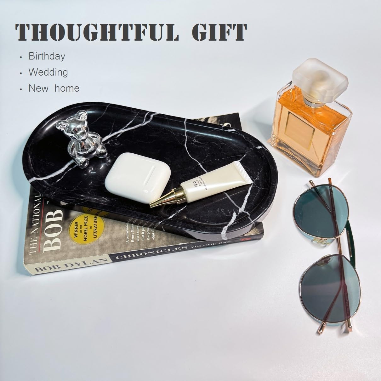 - NATURAL MARBLE FROM CHINA: Made from premium Black Root marble sourced in Guangxi, China. This marble oval tray showcases striking black-and-white natural veins, making each piece unique. A durable luxury stone tray that is stain-resistant, long-lasting, and perfect as a decorative tray for jewelry, perfume, or candles