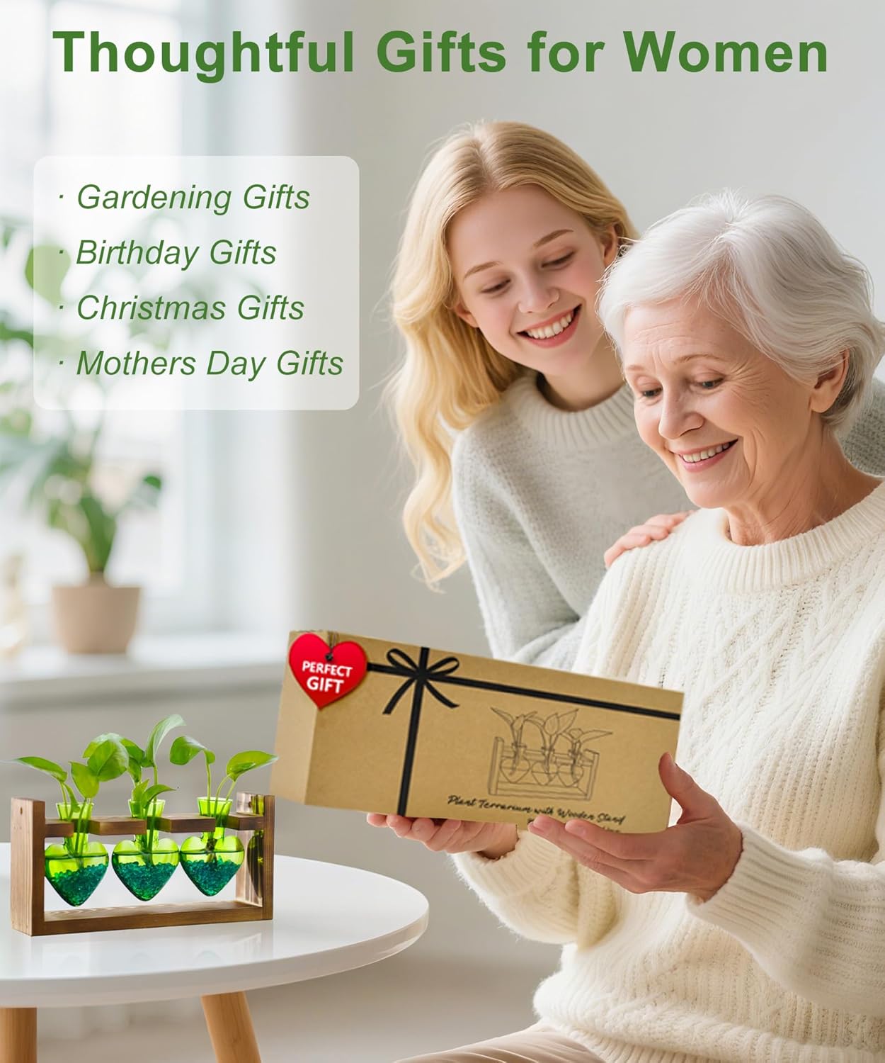 - A Great Gift:Comes in a beautifully designed box,ready to bring happiness to anyone.The perfect gift for everyone who loves life - your mom, grandma, wife, daughter, sister will adore it. Ideal for Mother's Day, birthdays, Christmas, Valentine's Day, and Thanksgiving. A thoughtful present for nature lovers and gardeners. Also makes a beautiful wedding party, anniversary, or special occasion decor gifts