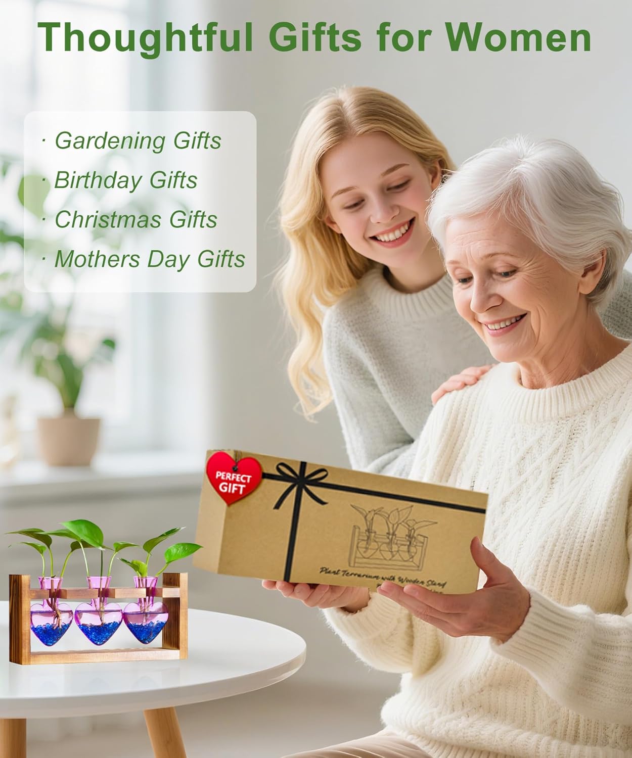 - A Great Gift:Our plant terrarium comes in its own beautifully designed box,ready to bring happiness to anyone.The perfect gift for everyone who loves life - your mom, grandma, wife, daughter, sister will adore it. Ideal for Mother's Day, birthdays, Christmas, Valentine's Day, and Thanksgiving. A thoughtful present for nature lovers and gardeners. Also makes a beautiful wedding party, anniversary, or special occasion decor gifts