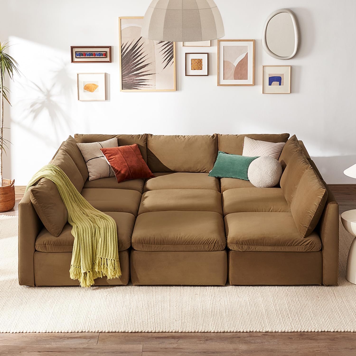 mopio Oversized Modular Sectional Sofa with Fully Removable Covers and Storage, Convertible U, L-Shaped and Sleeper Sectional, Modern Couches with Ottoman Chaise (Hazelnut Velvet, 9 Seats, Sleeper)