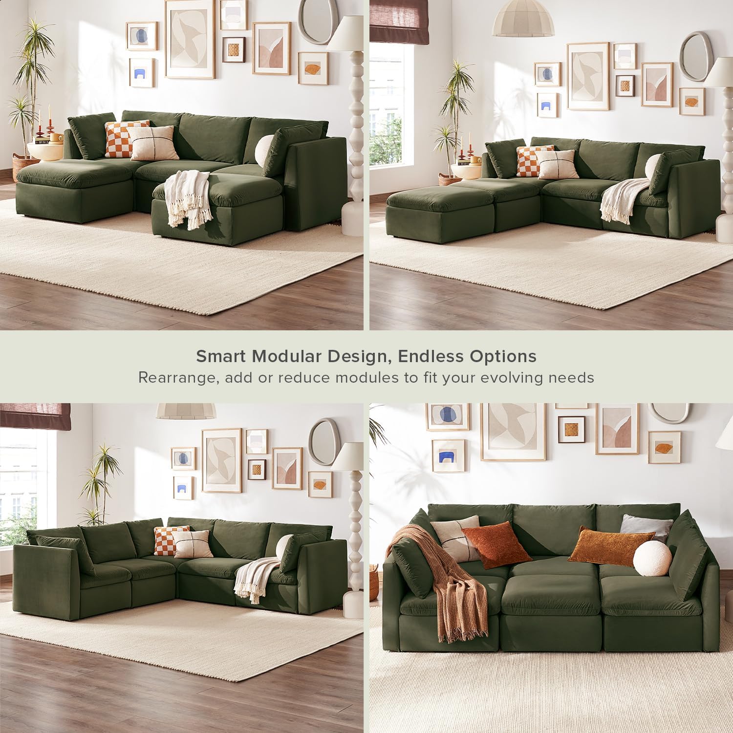 mopio Oversized Modular Sectional Sofa with Fully Removable Covers and Storage, Convertible U, L-Shaped and Sleeper Sectional, Modern Couches with Ottoman Chaise (Olive Green Velvet, 5 Seats, U)