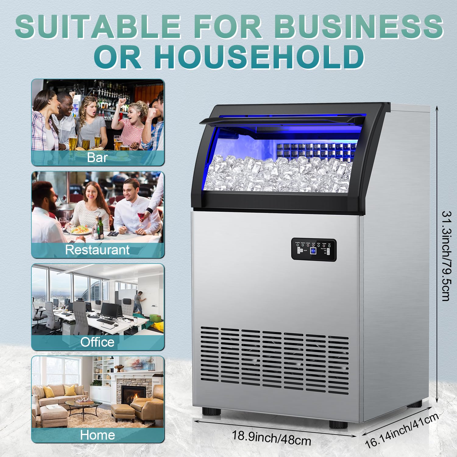 - Compact Design & Flexible Installation: Undercounter ice maker machine not only quickly generates ice but also stores it efficiently for easy access. It supports various installation options, including under-counter, or built-in installations, making it easy to integrate into various commercial settings. Suitable for large-scale use in places such as kitchens, bars, coffee shops, restaurants, and other commercial environments.