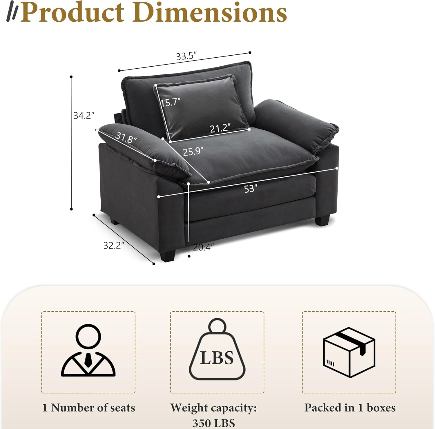 - Product Dimensions : 32.2"D x 53"W x 34.2"H