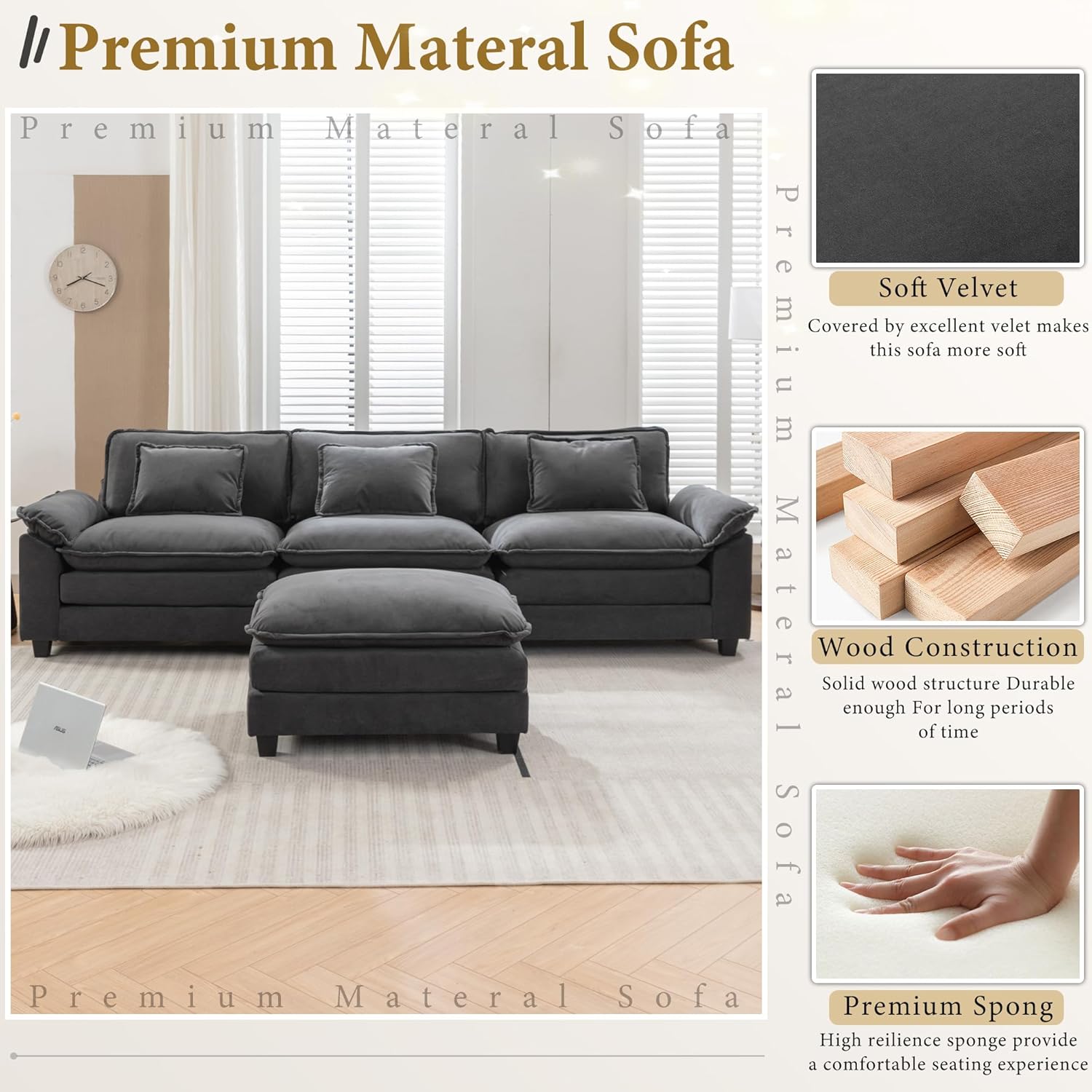 - Soft and Skin Friendly: This sofa is made of velvet fabric, which is soft and gentle to the skin.The cushions are super soft, sitting on them is like being wrapped in cotton, soft and comfortable!