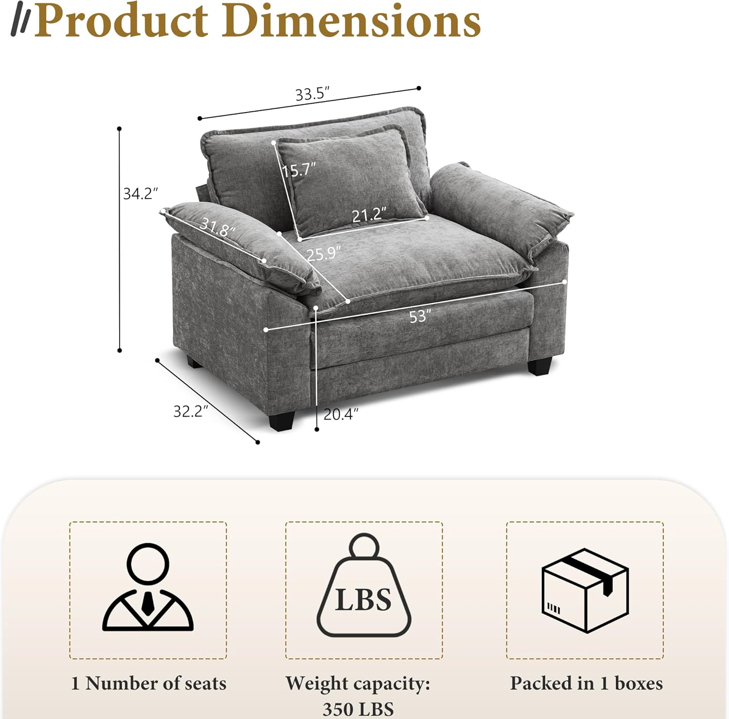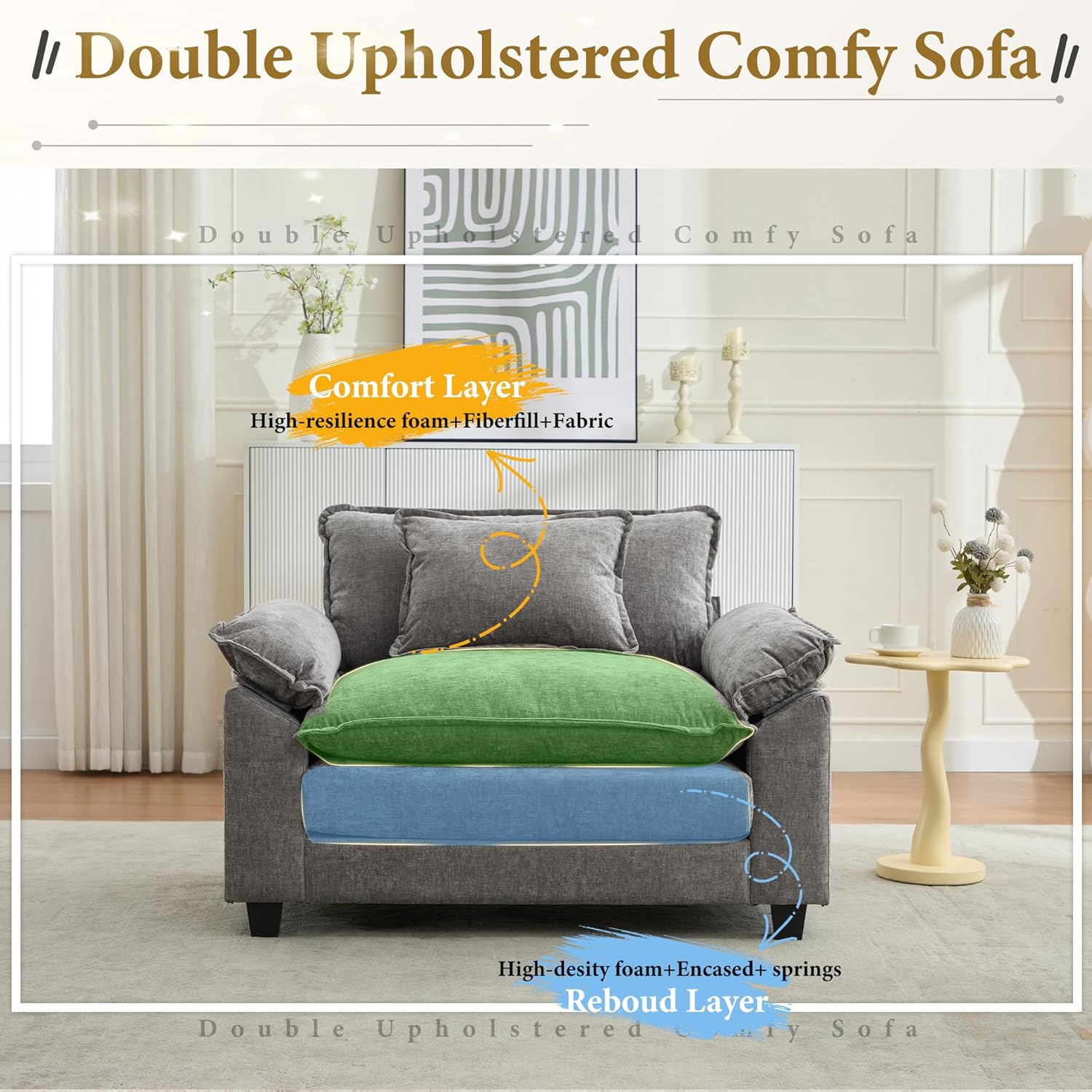 URRED Modular Sectional Sofa Comfy Cloud Couch, Modern Chenille Sofa Sleeper Deep Seat Couches with Ottoman/Pillows for Living Room (Gray, 53'')