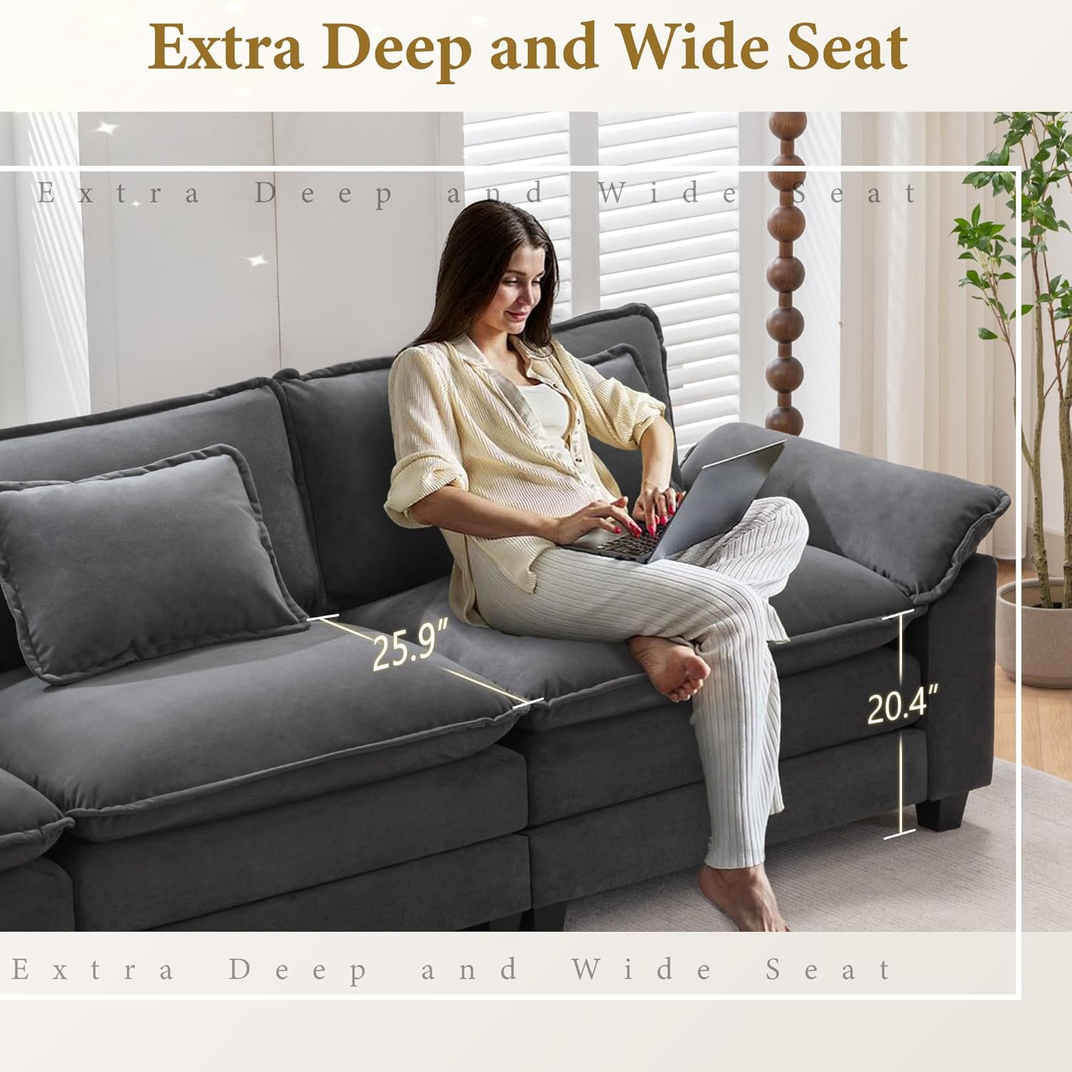 URRED Modular Sectional Sofa Comfy Cloud Couch, Modern Velvet Sofa Sleeper Deep Seat Couches with Ottoman/Pillows for Living Room (Dark Gray, 154'' - U Shape)