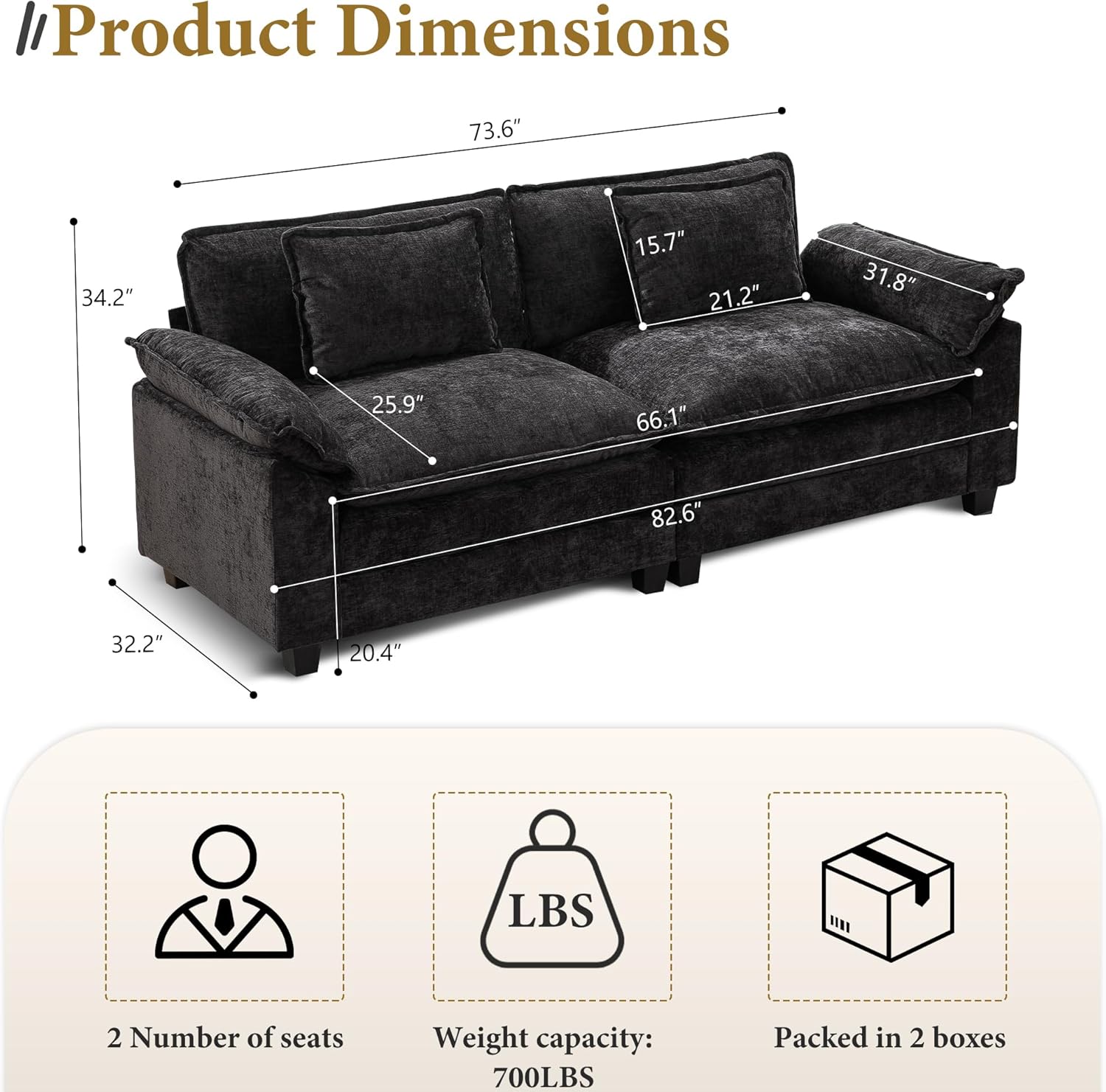 - Product Dimensions : 32.2"D x 82.6"W x 34.2"H