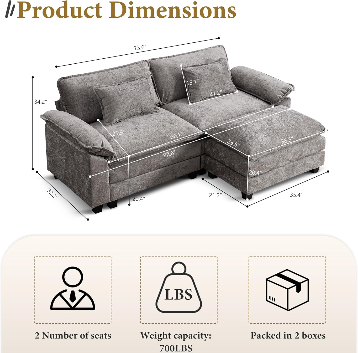 URRED Modular Sectional Sofa Comfy Cloud Couch, Modern Chenille Sofa Sleeper Deep Seat Couches with Ottoman/Pillows for Living Room (Gray, 82.6''- L Shape)