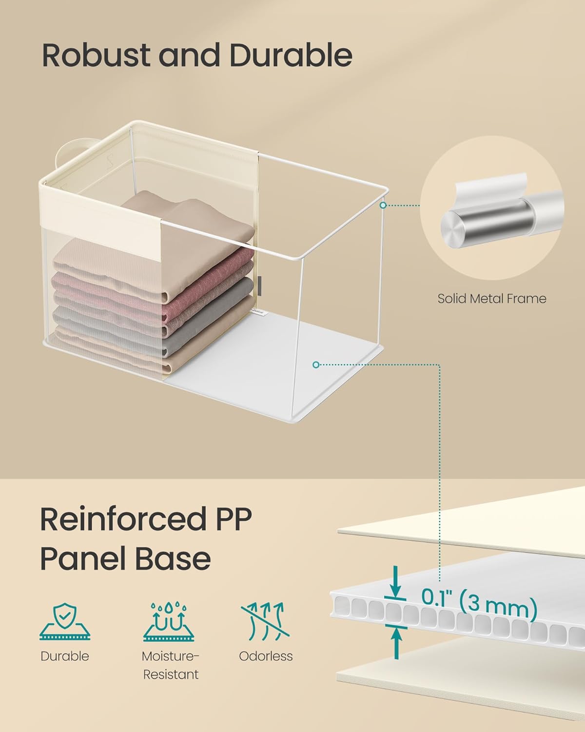 • Extremely Durable, Odorless & Moisture-Resistant: Constructed from dense nylon mesh and premium Oxford fabric, each box is reinforced with a thicker PP base and a sturdy metal frame for enhanced durability