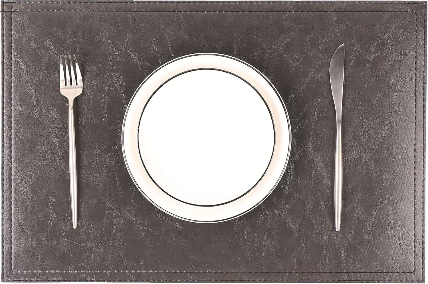 Jovono Waterproof PU Placemats, Faux Leather Dining Table Mat, Set of 8, Easy to Wipe Off Scrub Vinyl Mat, Heat & Stain Resistant for Office Conference Table, Home Décor Grey