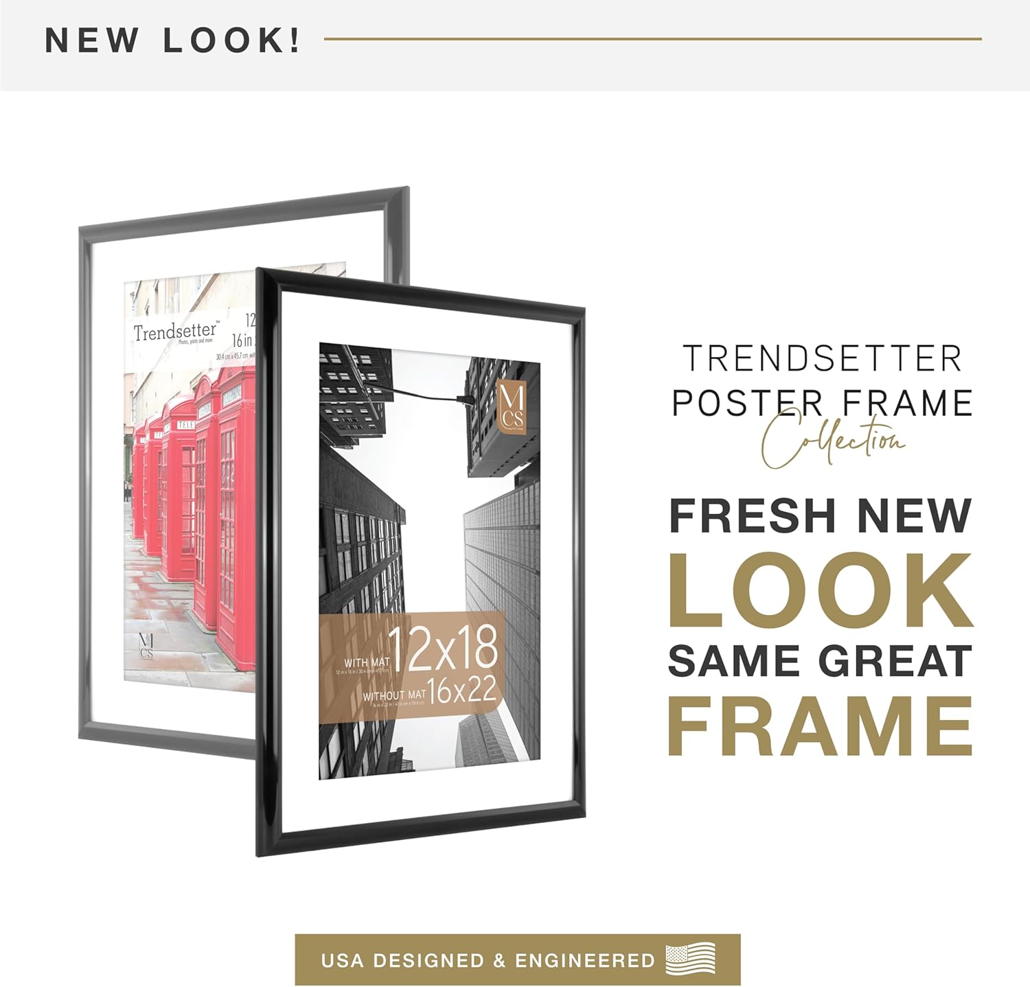 MCS Trendsetter 16x22 Matted Poster Frame with 12x18 Picture Display, Black Vertical & Horizontal Wall Hanging Large Picture Frame for Photos & Posters (1-Pack)