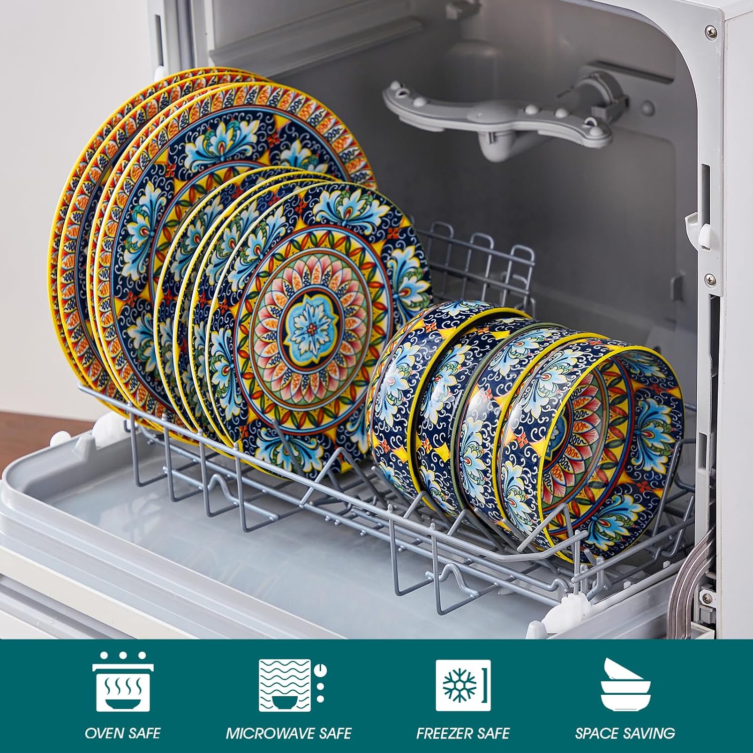vancasso 12 Pieces Dinnerware Sets, Yellow Plates and Bowls Set, Porcelain Dishes Set for 4, Microwave and Dishwasher Safe, Scratch Resistant, Bohemian Style Dining Ware Service for 4, Series SIMI
