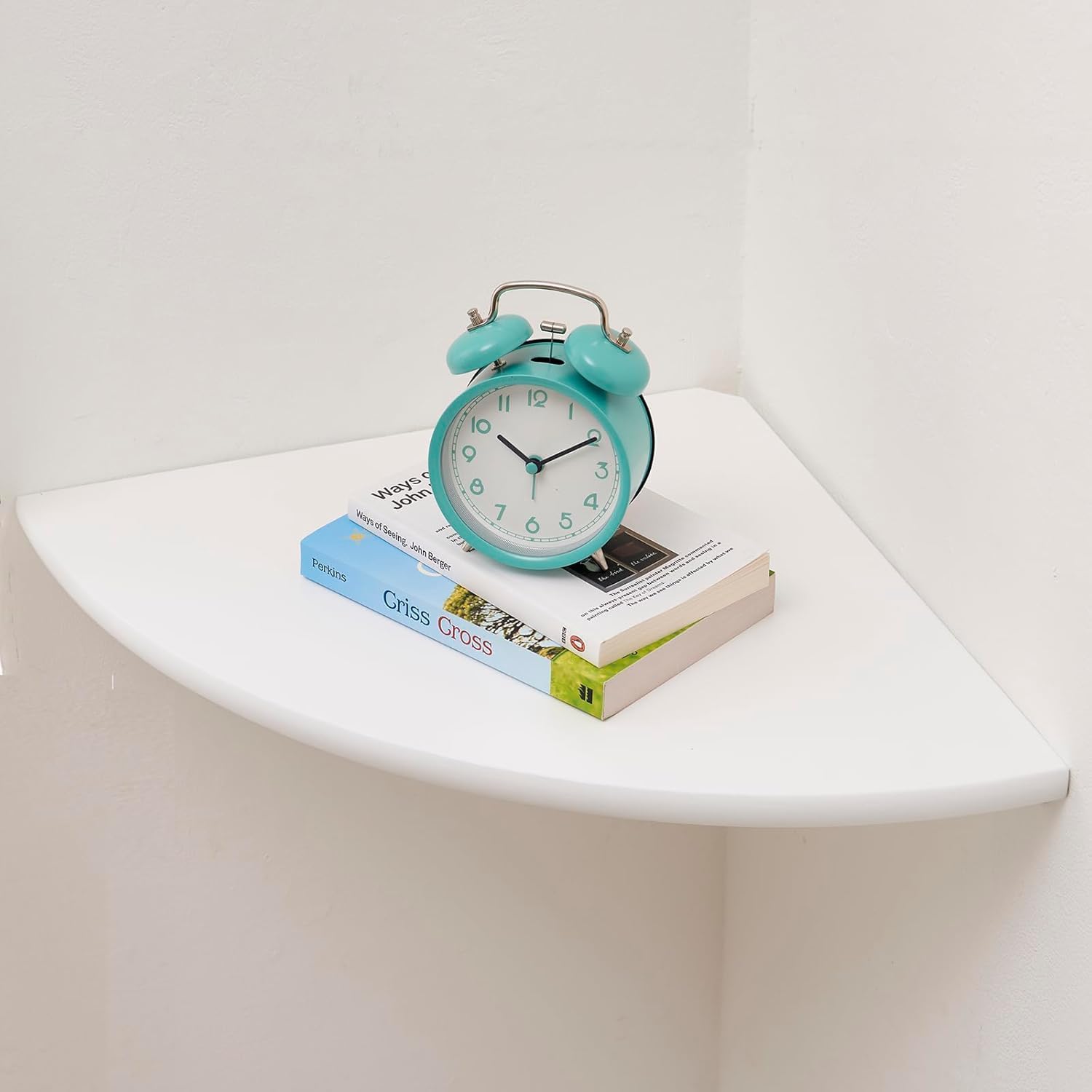 Corner Shelf, Solid Oak Wood Floating Corner Shelf Wall Mount Round End Floating Speaker with Wire Hole for Small Plant Photo for Bedroom Kitchen, Living Room White
