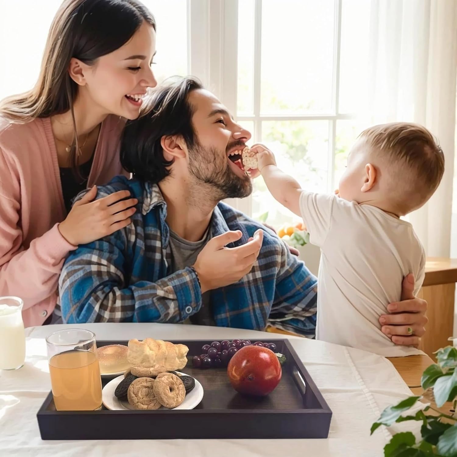 - Our bamboo and wood serving trays are designed with handles, making them easy to grab and hold, and easy to carry. The edges prevent food from accidentally falling off, and also prevent accidents caused by slipping hands, avoiding your embarrassment.