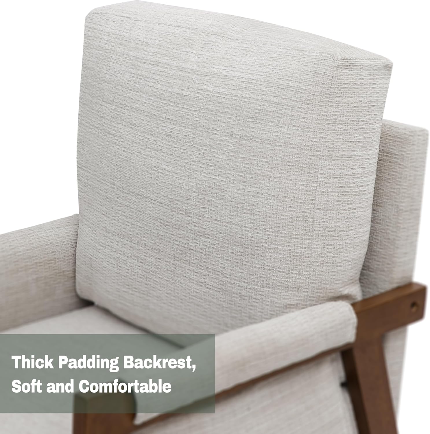 Modern Accent Chairs Set of 2 for Living Room Mid Century Arm Chairs Upholstered Bedroom Chairs Comfy Lounge Chairs with Solid Wood Frame, White