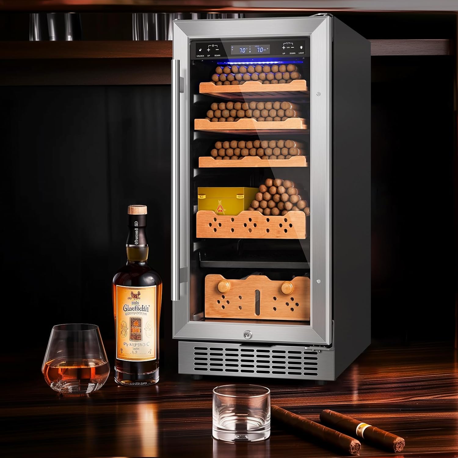 Electric Cigar Humidor,15 Inch Upgraded Large Capacity Electric Cigar Cabinet with Powerful Compressor, Digital LED Screen, Safety Lock,Smart Temperature Control,Father's Day Gift for Men