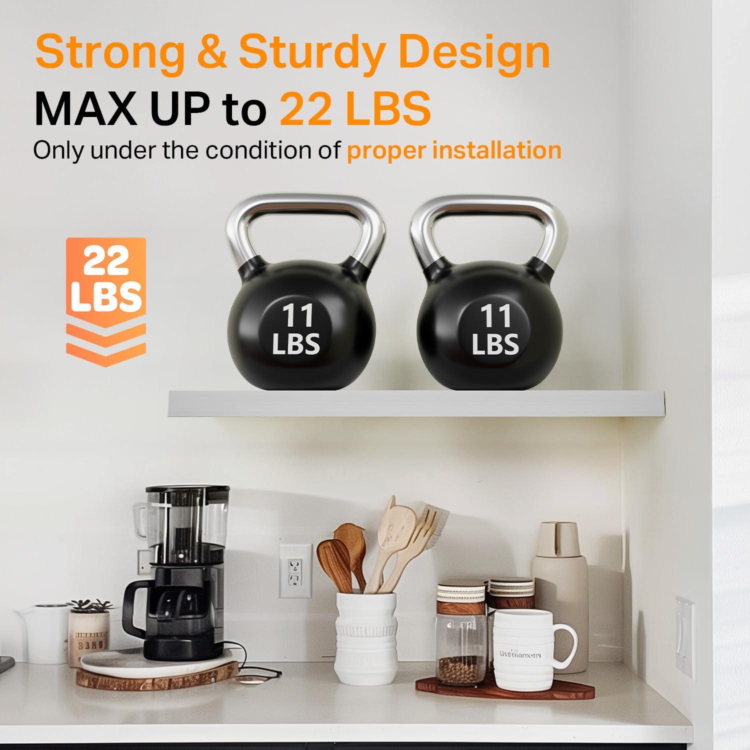 - 𝐒𝐭𝐫𝐨𝐧𝐠 𝐋𝐨𝐚𝐝 𝐂𝐚𝐩𝐚𝐜𝐢𝐭𝐲 – Made from 𝐝𝐮𝐫𝐚𝐛𝐥𝐞 𝐞𝐧𝐠𝐢𝐧𝐞𝐞𝐫𝐞𝐝 𝐰𝐨𝐨𝐝 and reinforced with sturdy brackets, each shelf 𝐬𝐮𝐩𝐩𝐨𝐫𝐭𝐬 𝐮𝐩 𝐭𝐨 𝟐𝟐 𝐥𝐛𝐬, making them ideal for books, plants, toiletries, or decor
