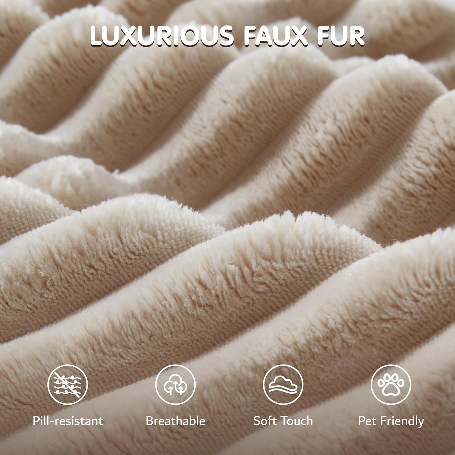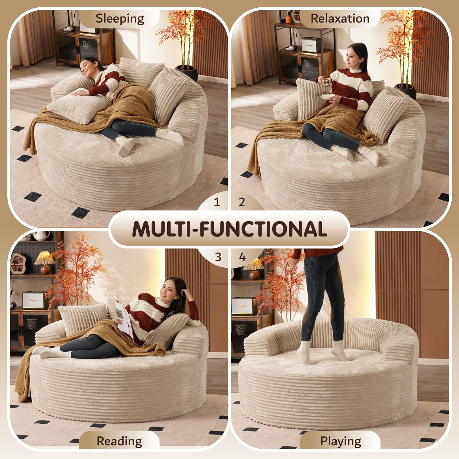 ovios 58" Oversized Round Chair Lounge Chaise Indoor, No Assembly Required, Cloud Large Circle Chair with Plush Fuax Fur, Fluffy Modern Sleeper Sofa Bed for Reading Yoga, Beige (Plush Corduroy Fabric)