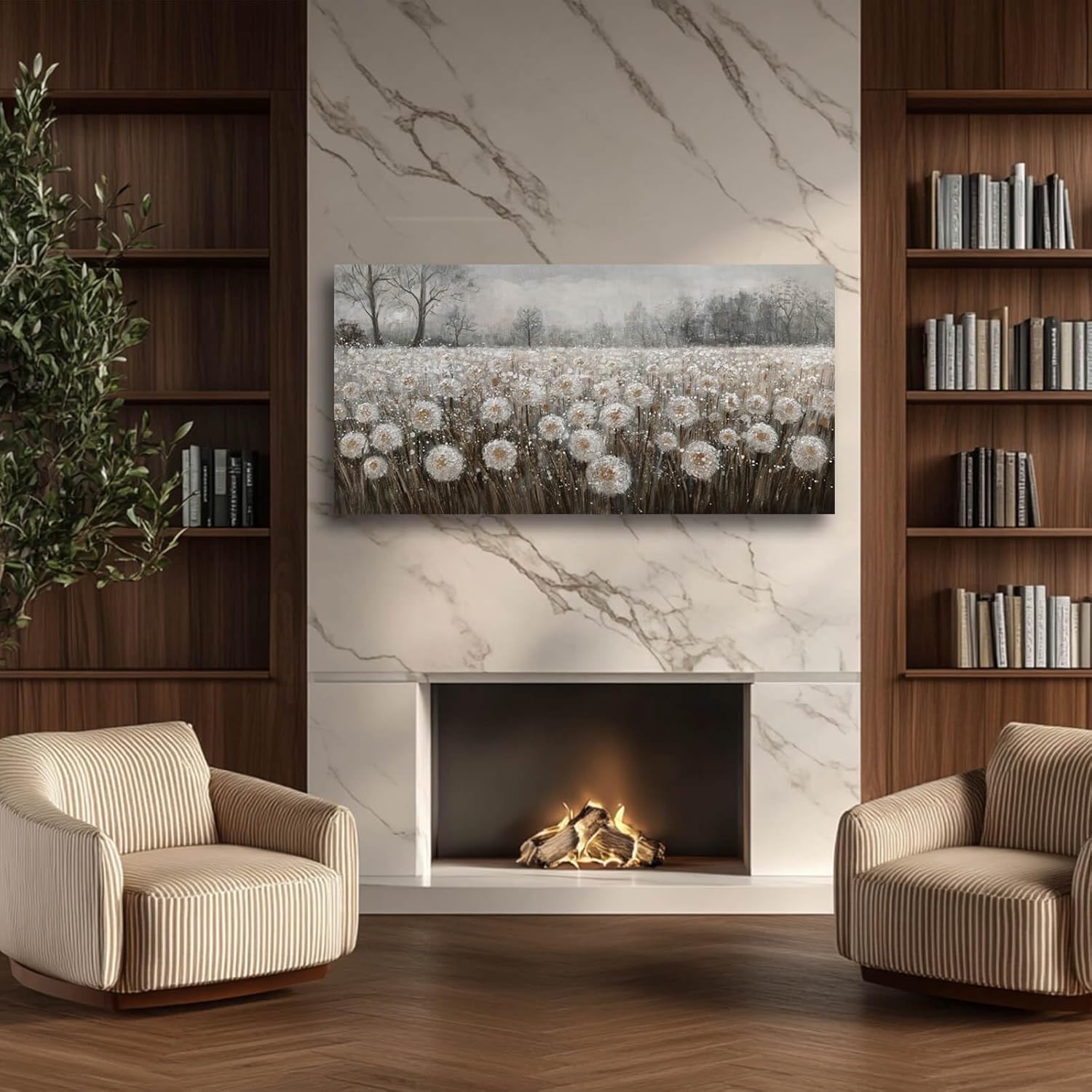 Dandelion Wall Art White Flowers Pictures Cuadros Decorativos Para Dormitorio Canvas Wall Decor Floral Room Decor for Bedroom Girls Room 24"x48"