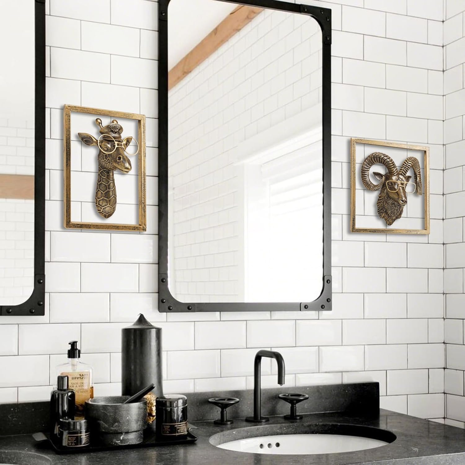 JJALIGHTS Animal Heads Wall Decor Resin Animals Sculptures Head Wall Hanging Decoration Imitation Copper vintage Wall Sculpture for Living Room Bedroom Office(Giraffe,Includes Metal Frame)