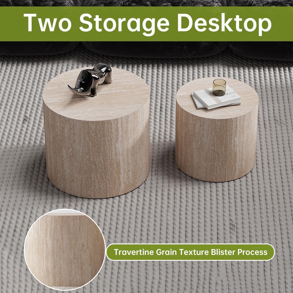 Round Nesting Coffee Tables Modern Travertine Coffee Table Small Round Coffee Tables Circular Side Table Accent End Table Nested Coffee Table Set for Living Room (Travertine)
